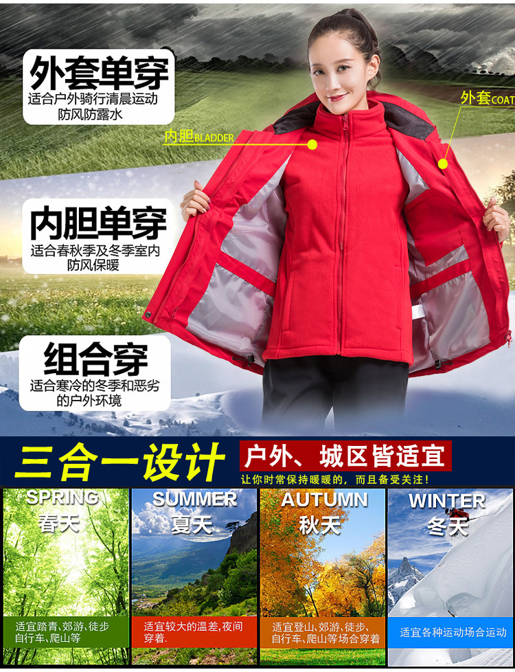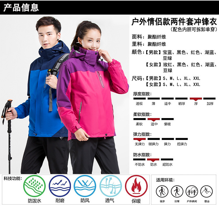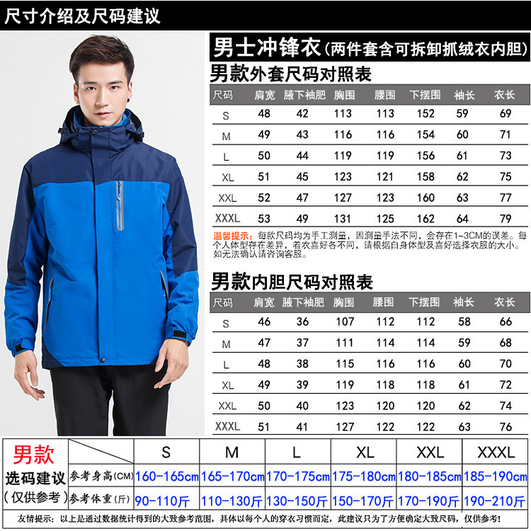 스팟 아웃도어 스포츠 투피스 세인원 재킷 남녀공용 방풍 재킷 등산 따뜻한 작업복 로고