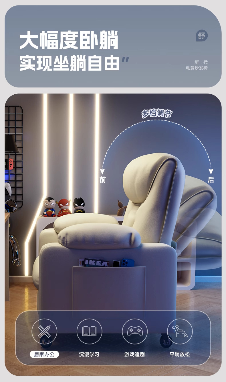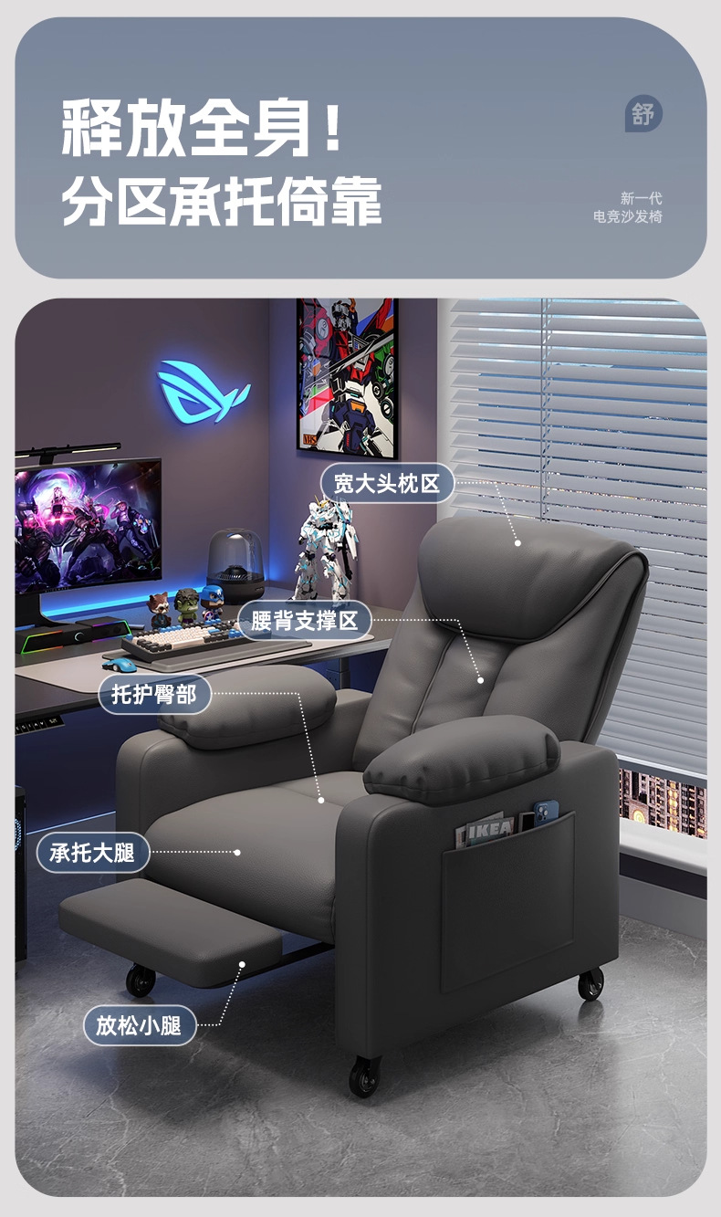 컴퓨터 의자, 가정용 게임 의자, 편안한 좌식 리클라이닝 소파 등받이 의자, 인체공학적 사무실 책상 의자
