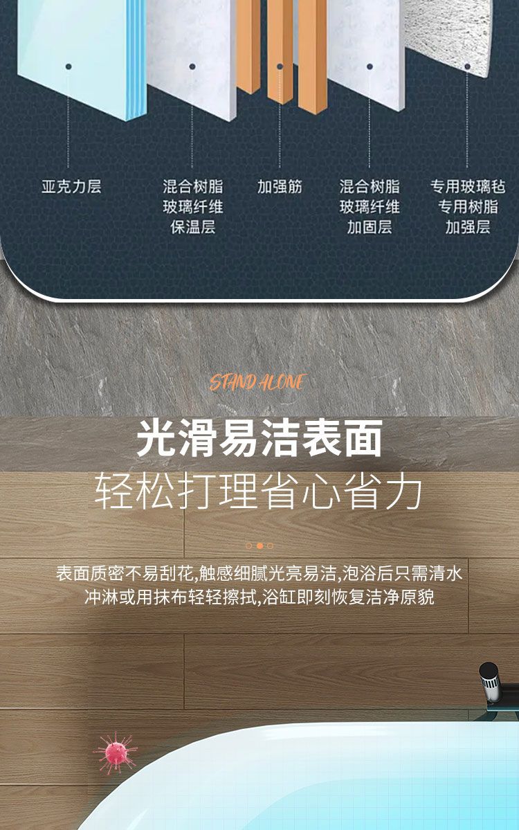욕실 가정용 소형 단일 아크릴 성인 원활한 통합 호텔 고급 독립 욕조스토어 가기