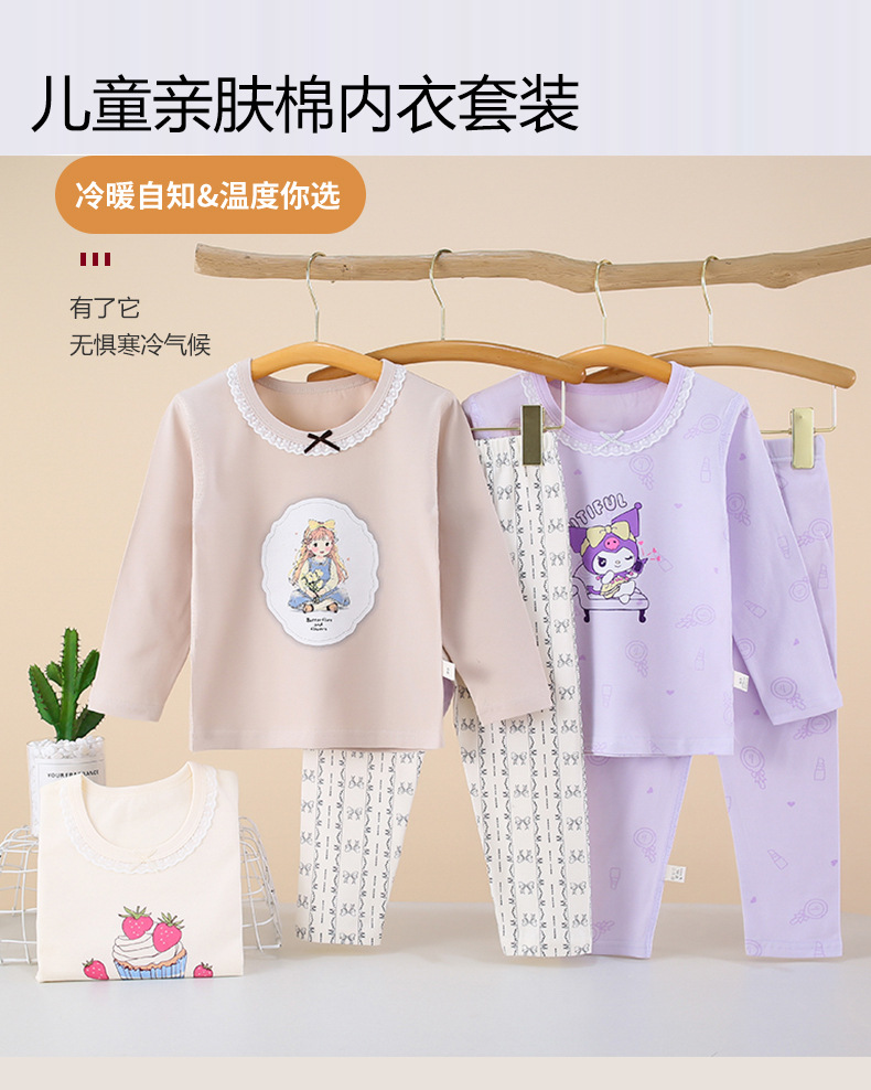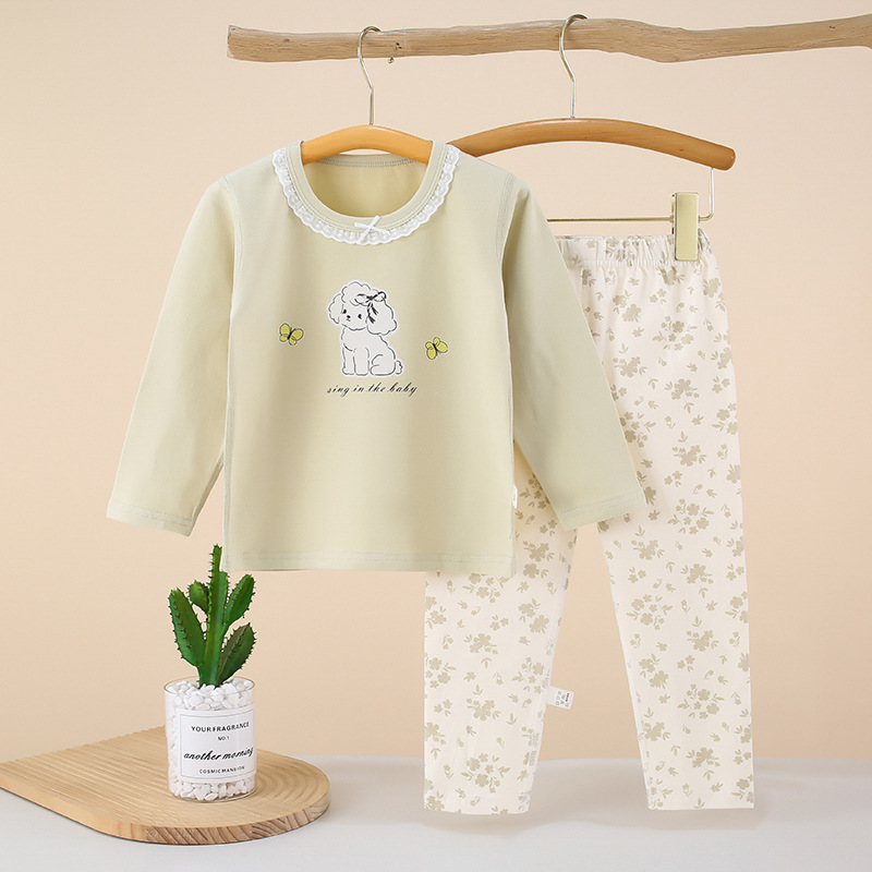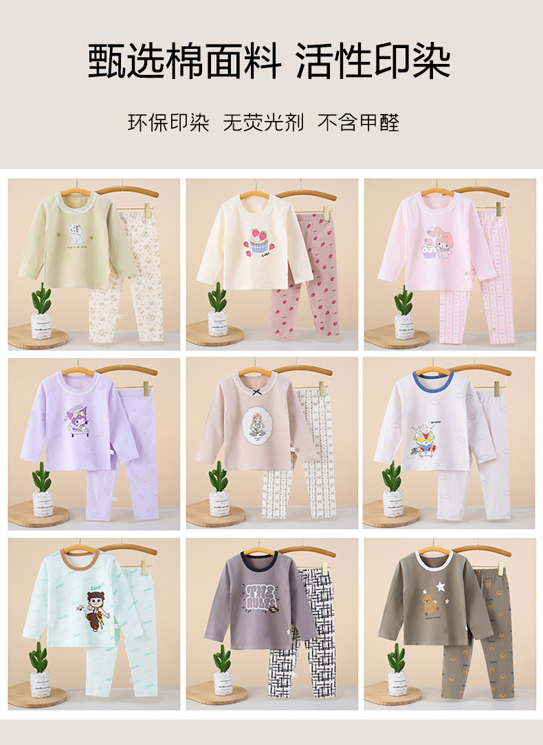 Tilapia 어린이 속옷 세트 순면 소년과 소녀 가을 옷과 긴 바지 아기 봄, 가을 옷 소형, 중형 및 대형 어린이 겨울