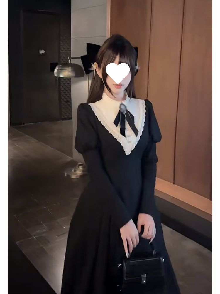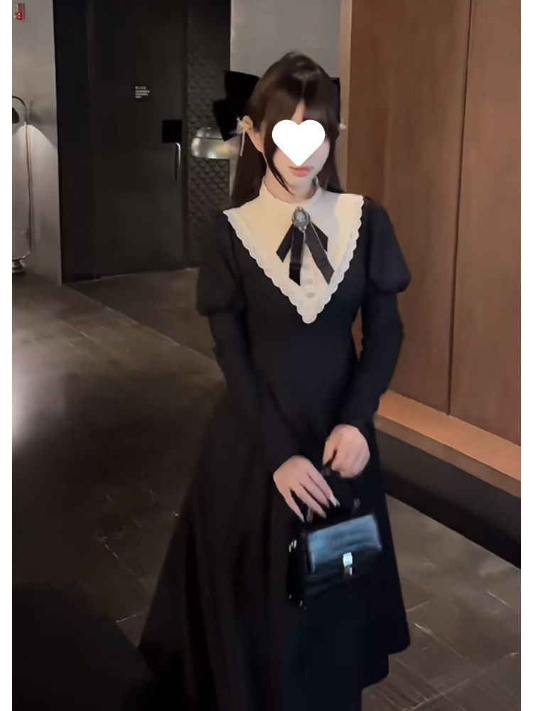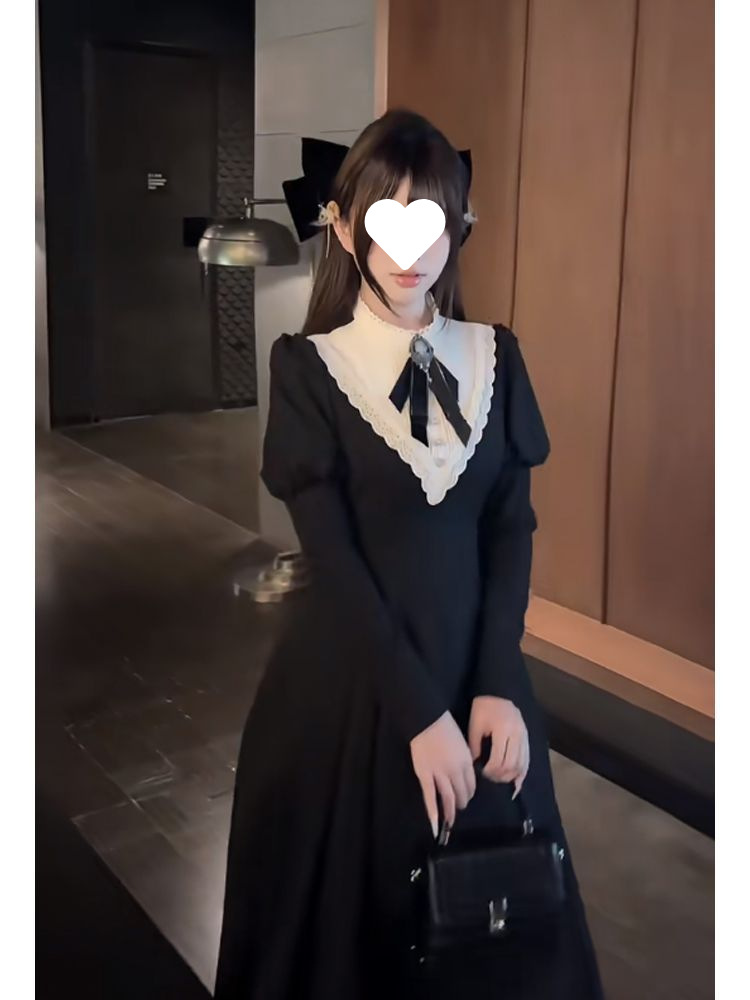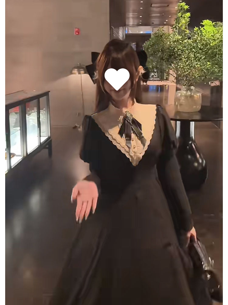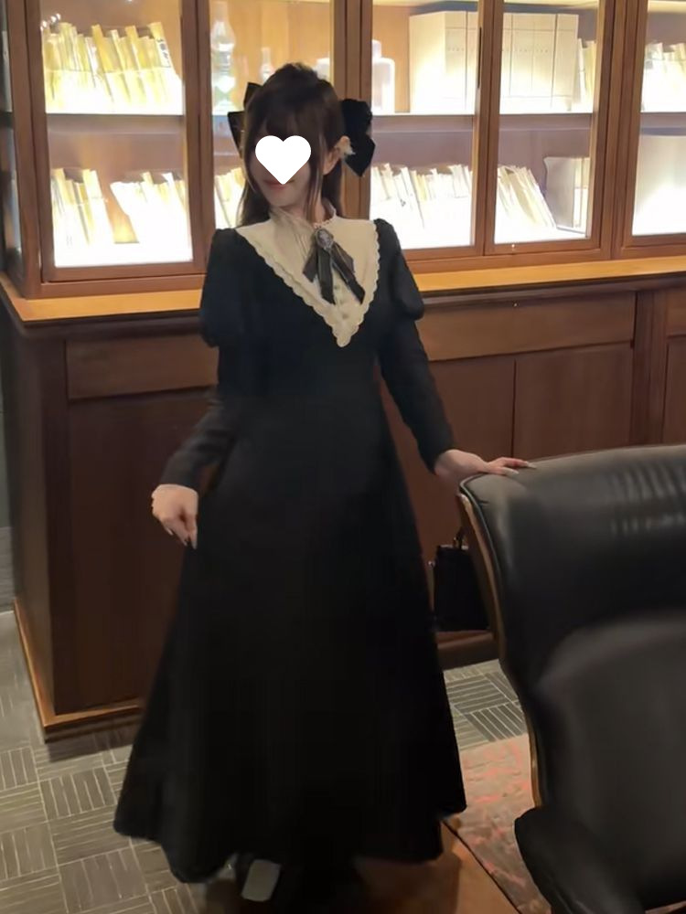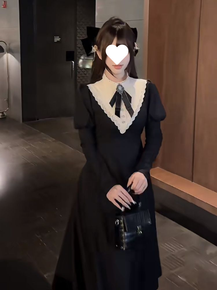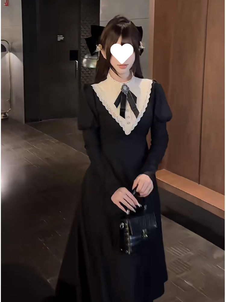 우아한 레이디 봄 여름 새로운 프렌치 햅번 디자인 궁전 스타일 허리 로리타 다크 드레스