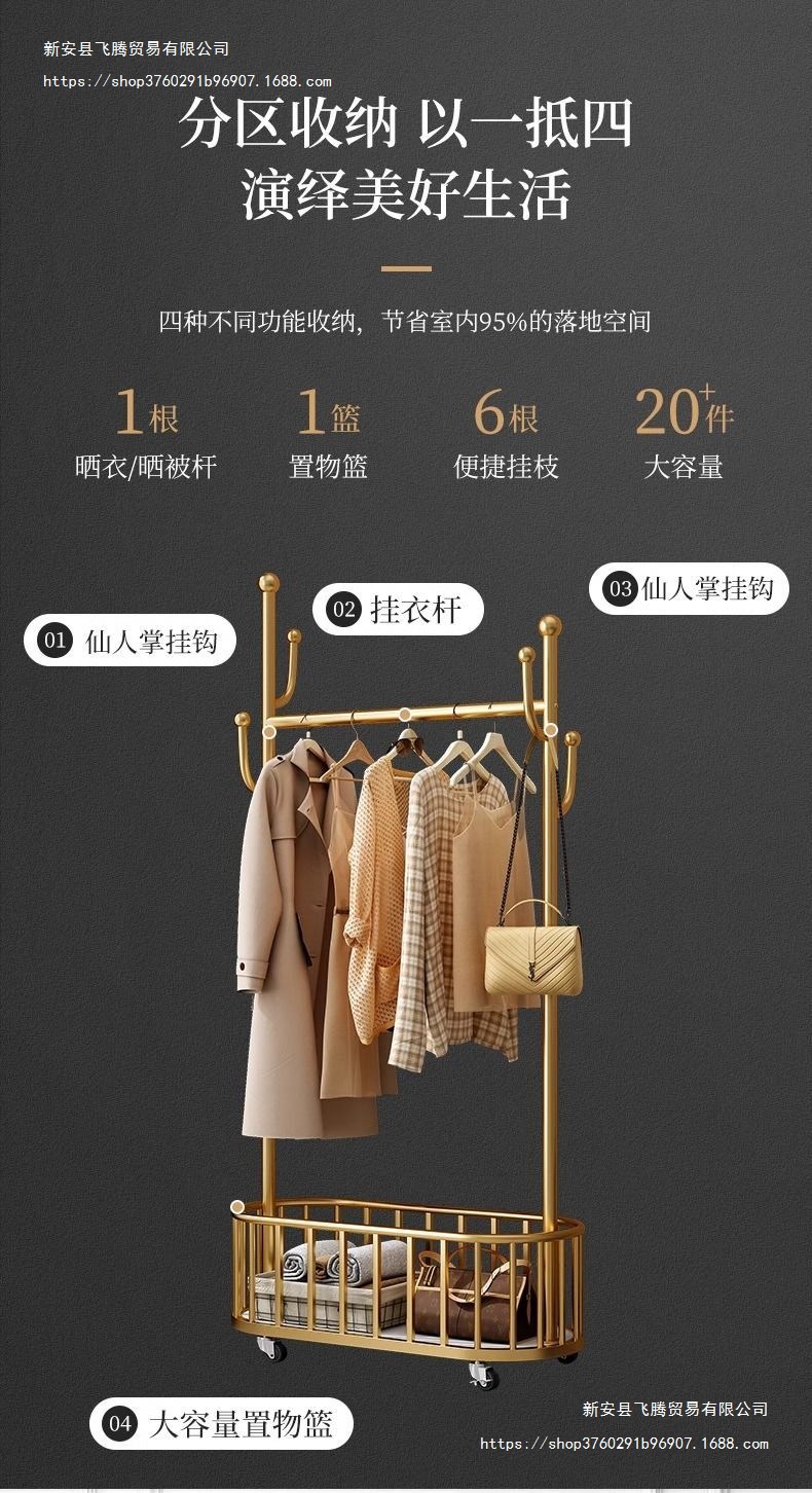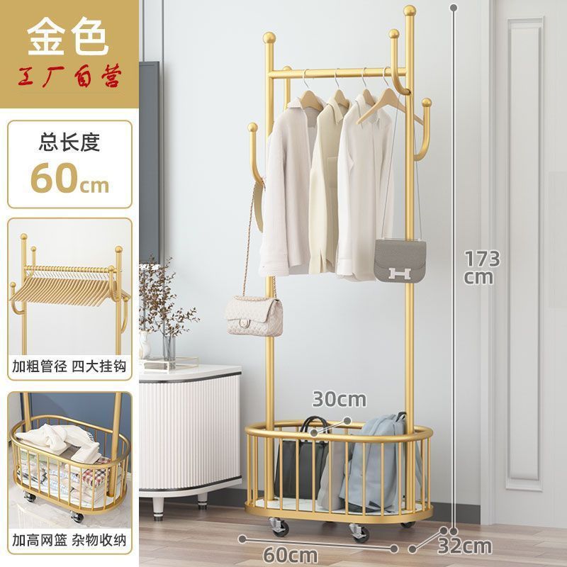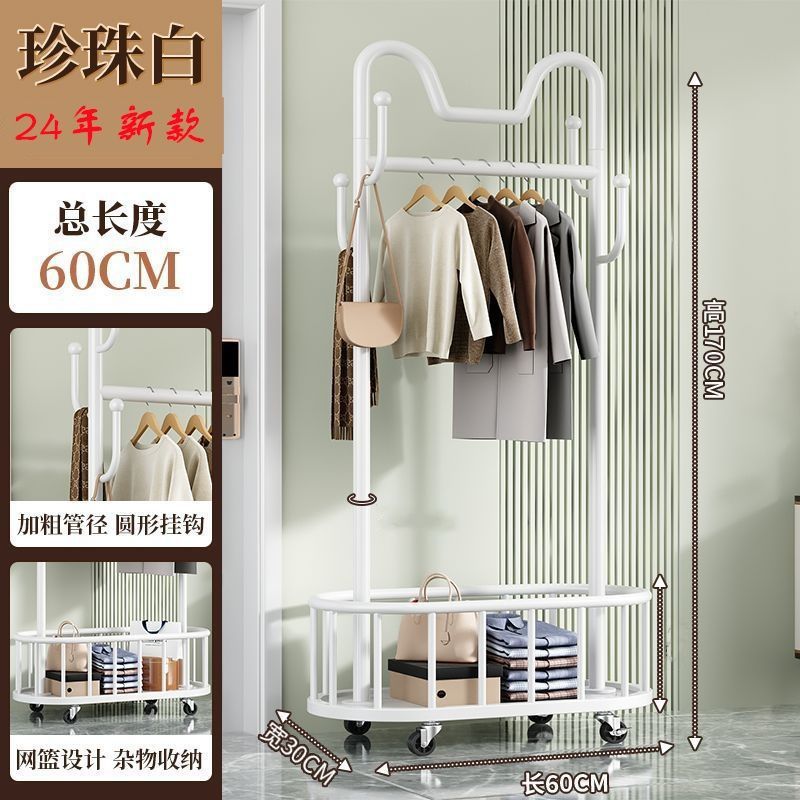 옷걸이 바닥 스탠딩 수직 옷걸이 이동식 바퀴가 달린 가정용 수납 옷걸이 거실 인터넷 연예인 가벼운 간단한 코트 랙스토어 가기
