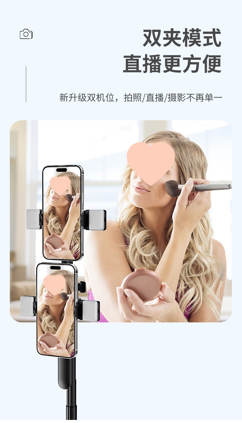 • K28D双夹(175CM+双手机夹+双补光灯+蓝牙遥控器+铝合金管+龙骨支架)