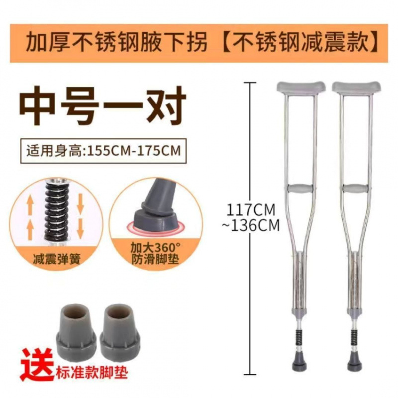 의료용 지팡이, 스테인레스 스틸 지팡이, 겨드랑이 이중 지팡이, 골절 장애인 노인 지팡이, 조절 가능한 텔레스코픽 두꺼운 지팡이스토어 가기
