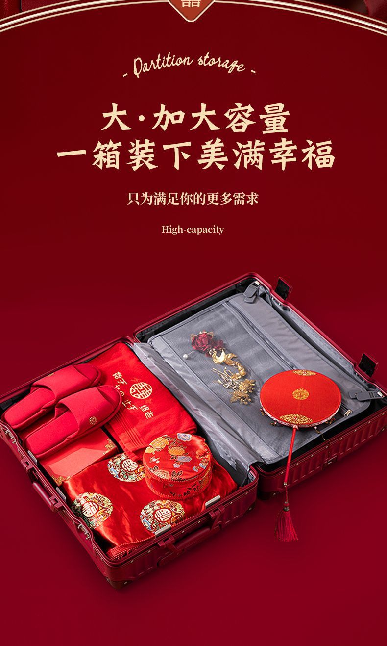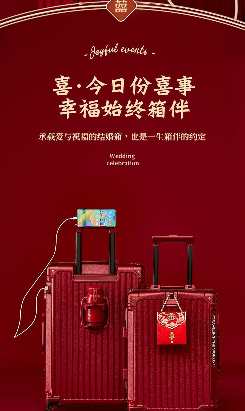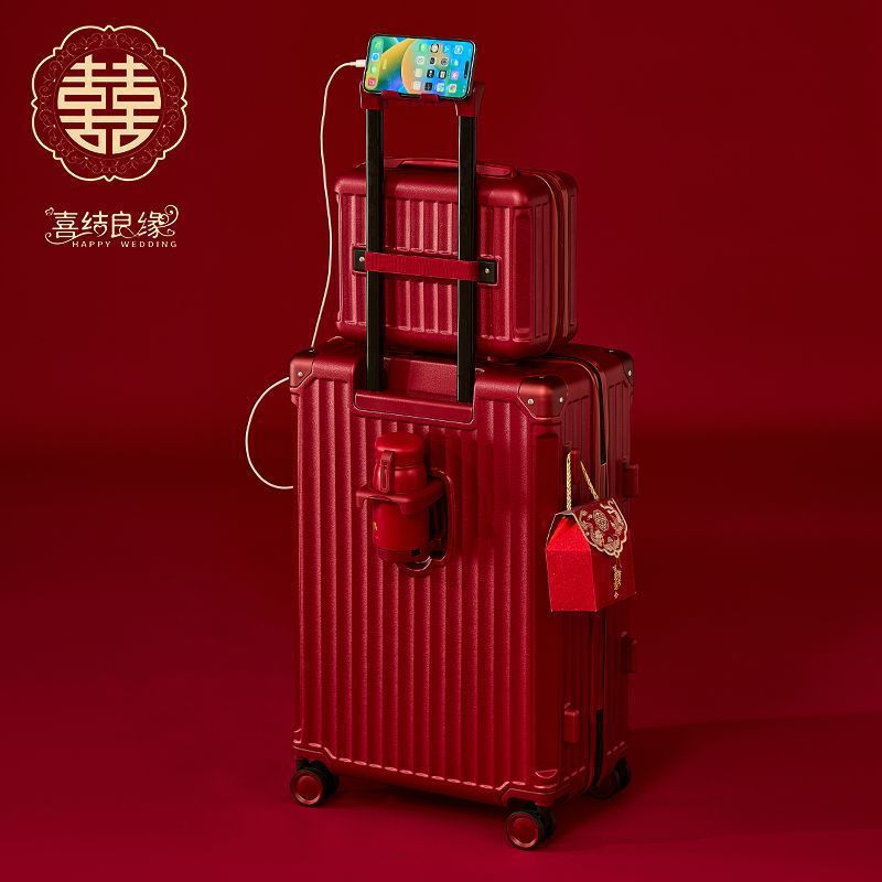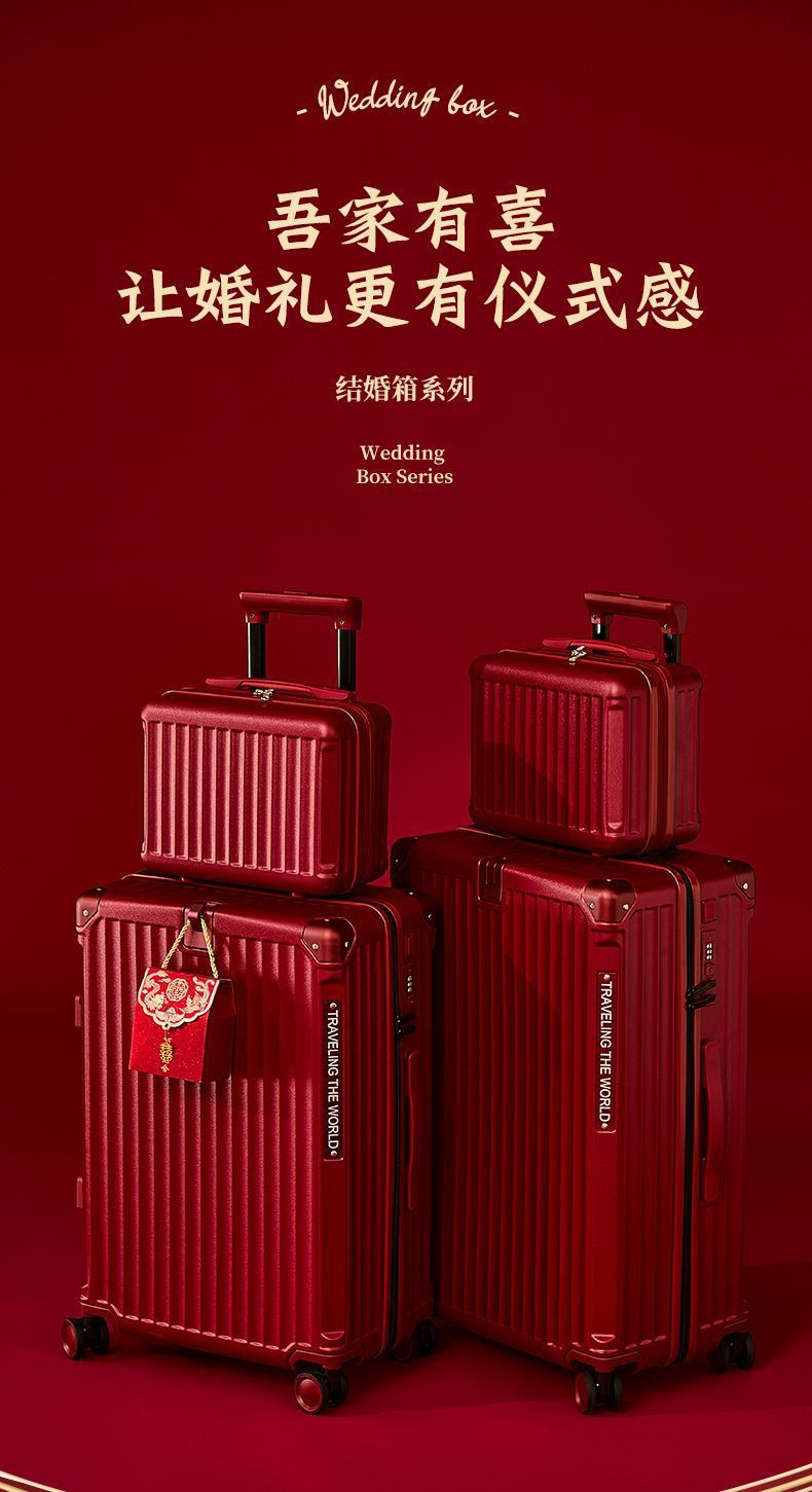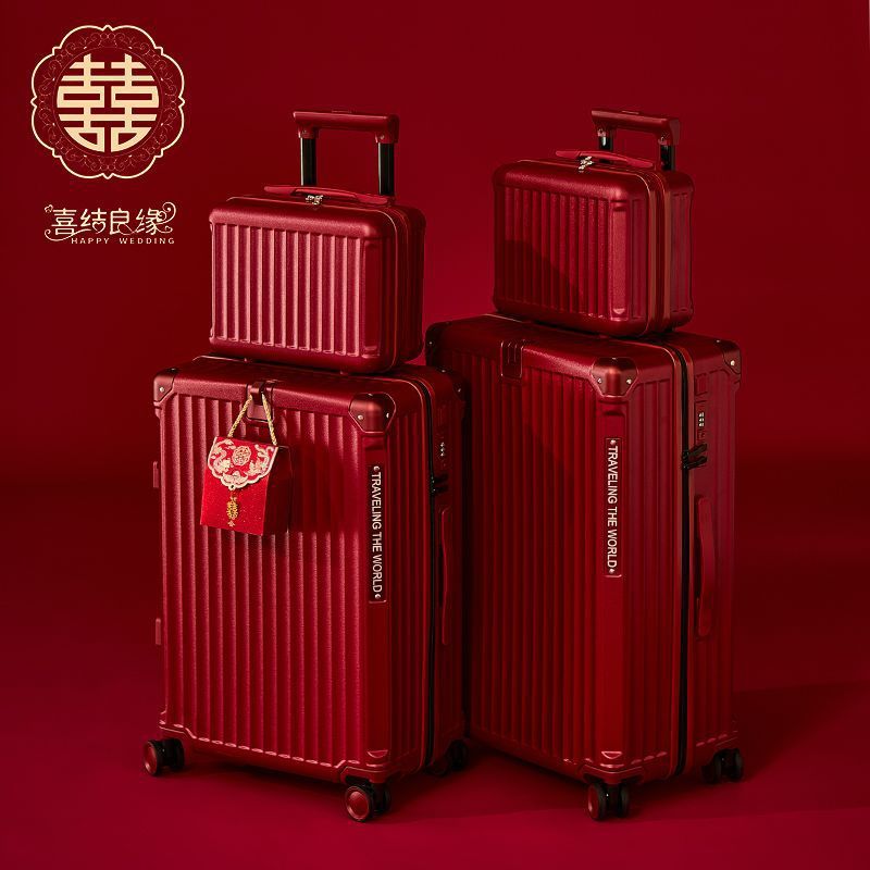 결혼식 가방, 결혼식 가방, 빨간색 트롤리 케이스, 여성 결혼식 비밀번호, 신부 결혼식 가방, 가죽 가방 한 쌍, 축제 새 스타일