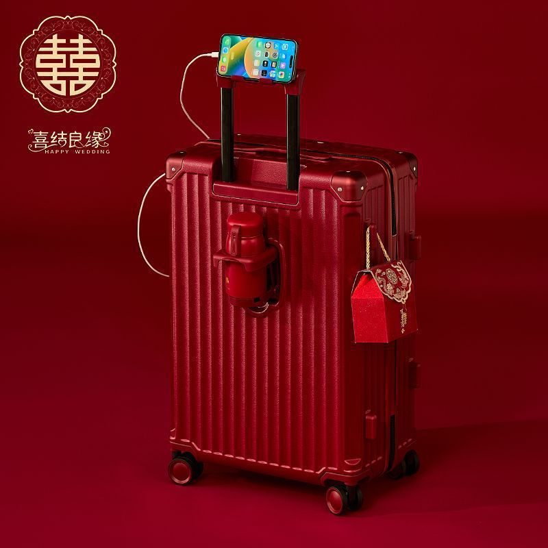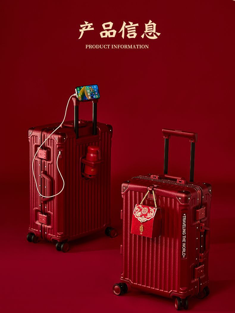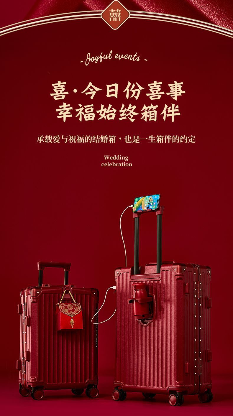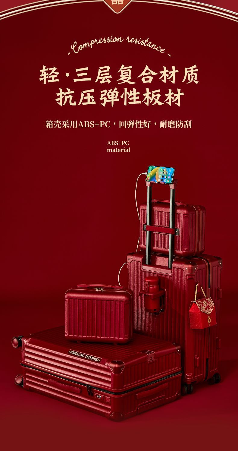 결혼식 가방, 결혼식 가방, 빨간색 트롤리 케이스, 여성 결혼식 비밀번호, 신부 결혼식 가방, 가죽 가방 한 쌍, 축제 새 스타일