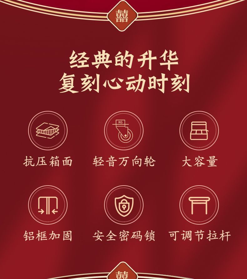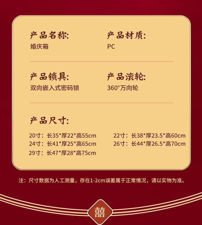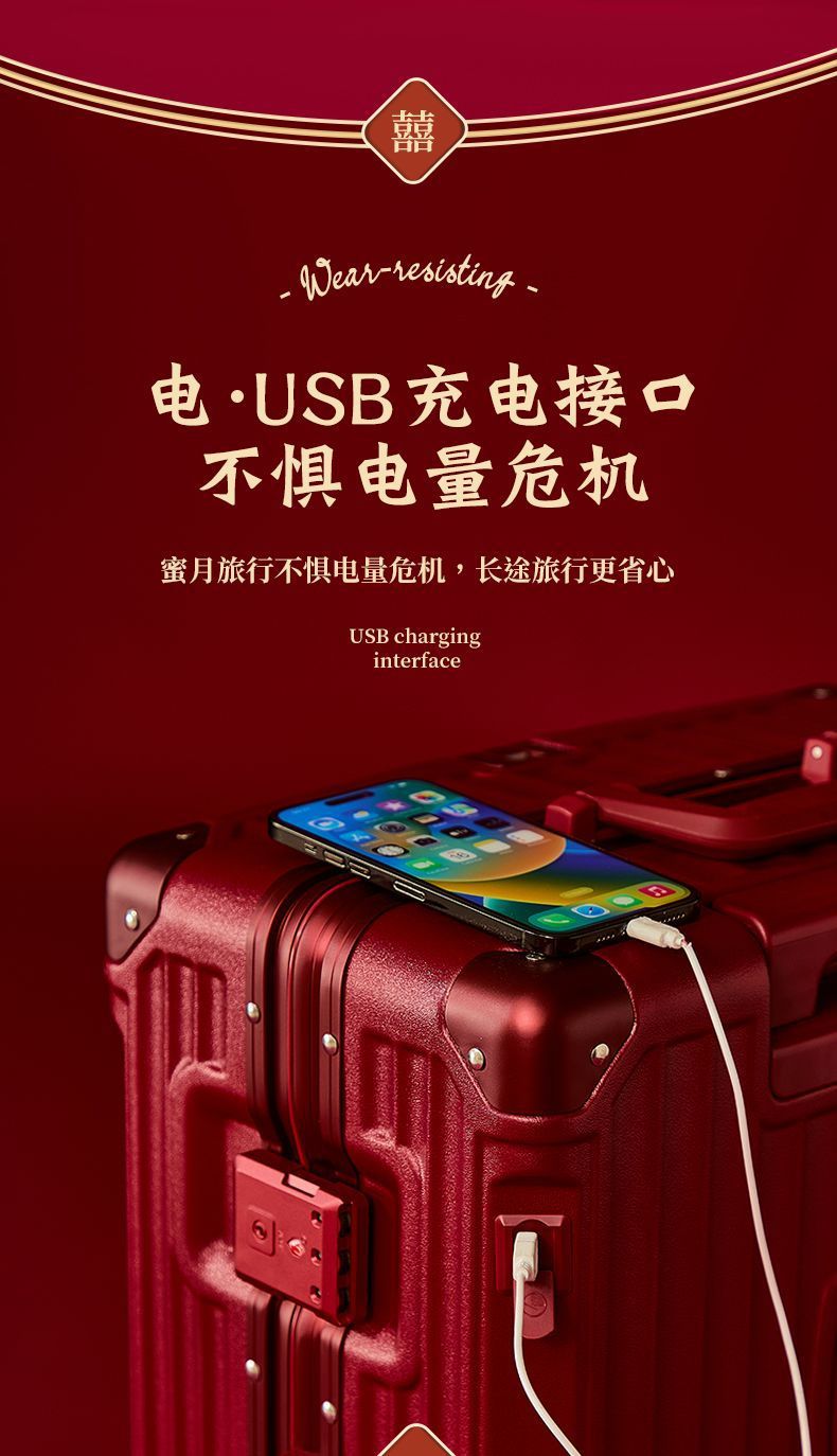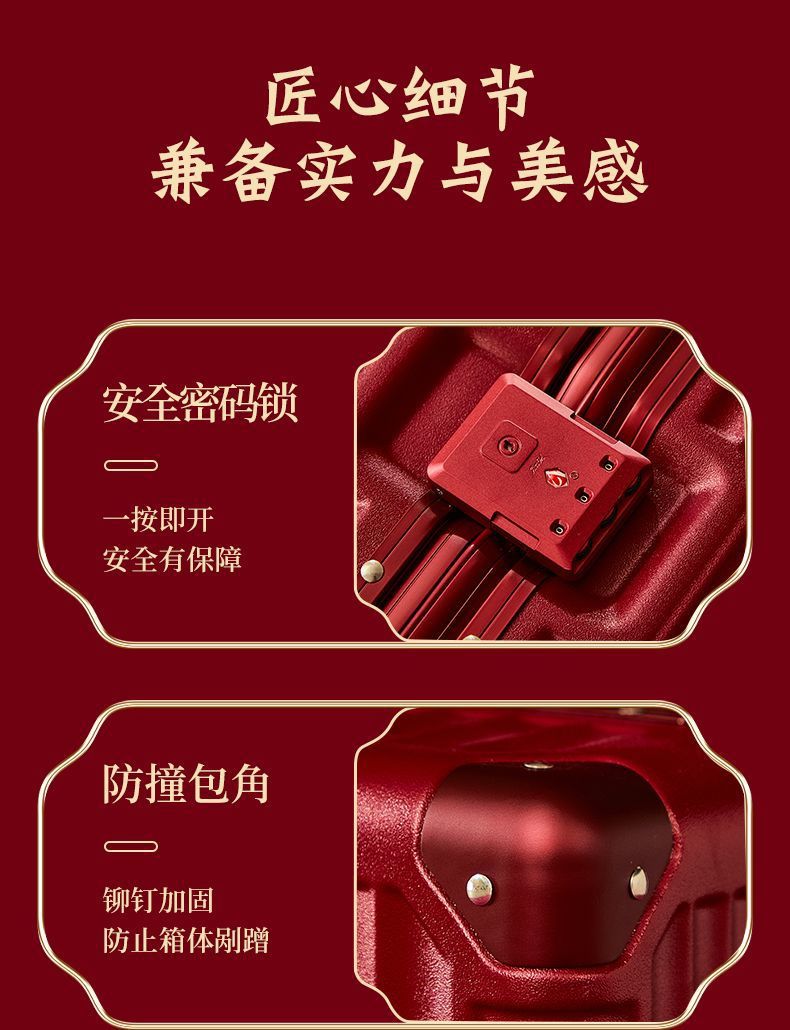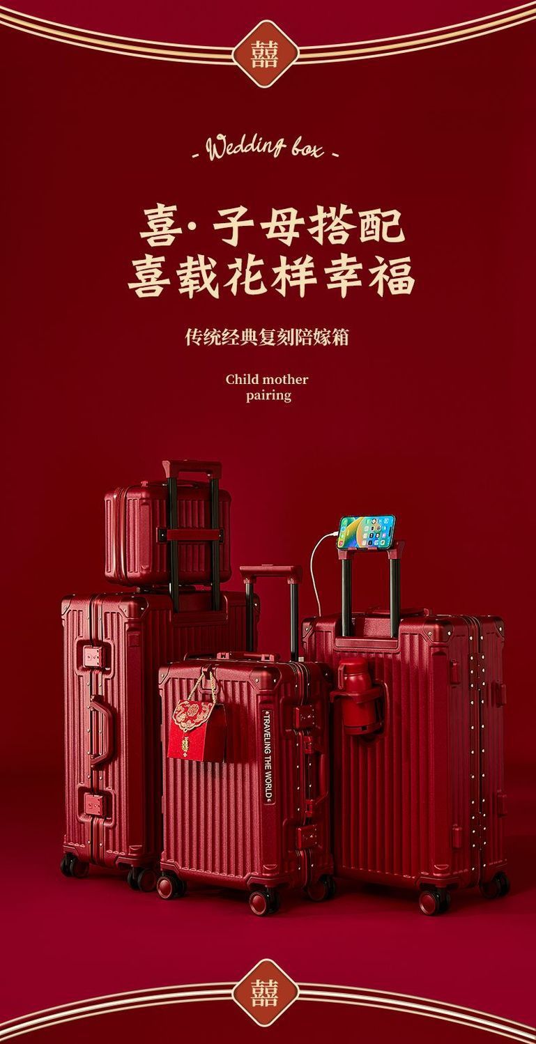 결혼식 가방, 결혼식 가방, 빨간색 트롤리 케이스, 여성 결혼식 비밀번호, 신부 결혼식 가방, 가죽 가방 한 쌍, 축제 새 스타일