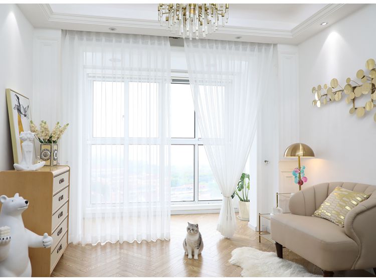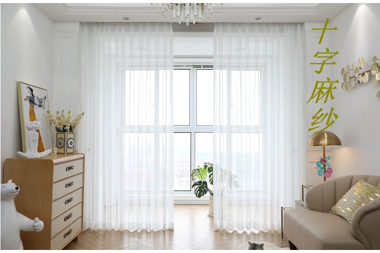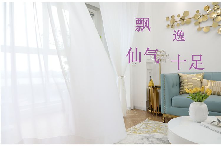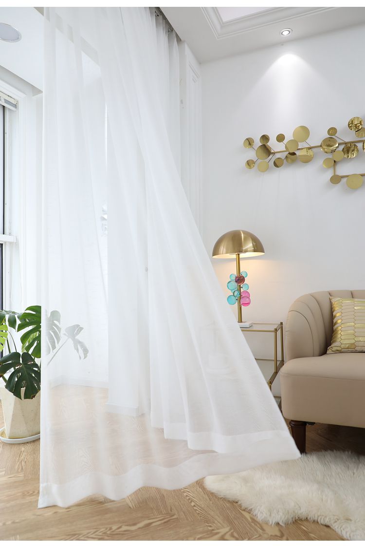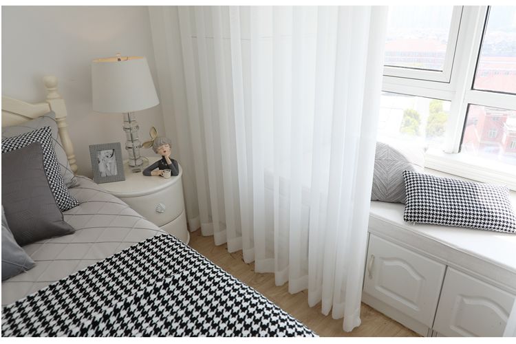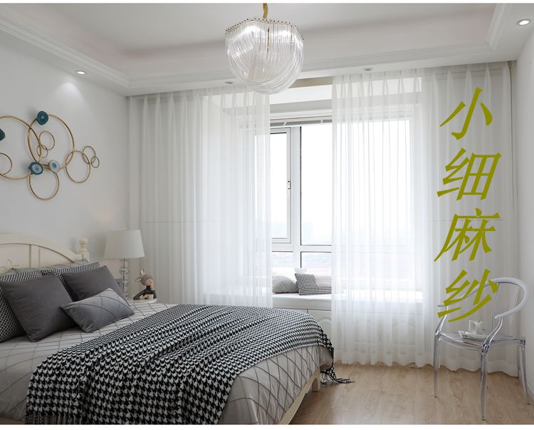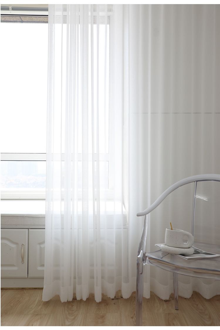 커튼 거즈 흰색 거즈 얇은 천 완제품 흰색 모래 베드룸 창 발코니 간단한 침실 거실 쉬폰