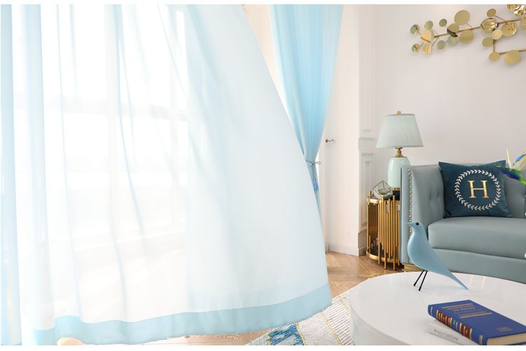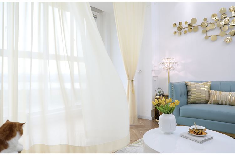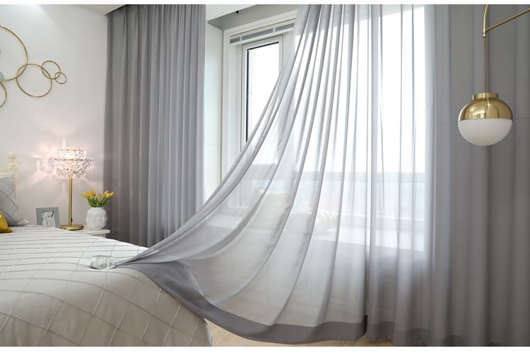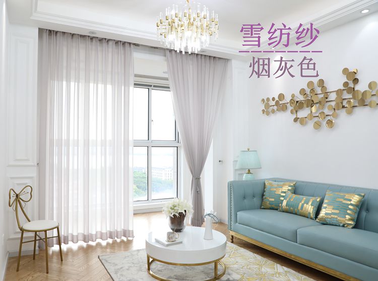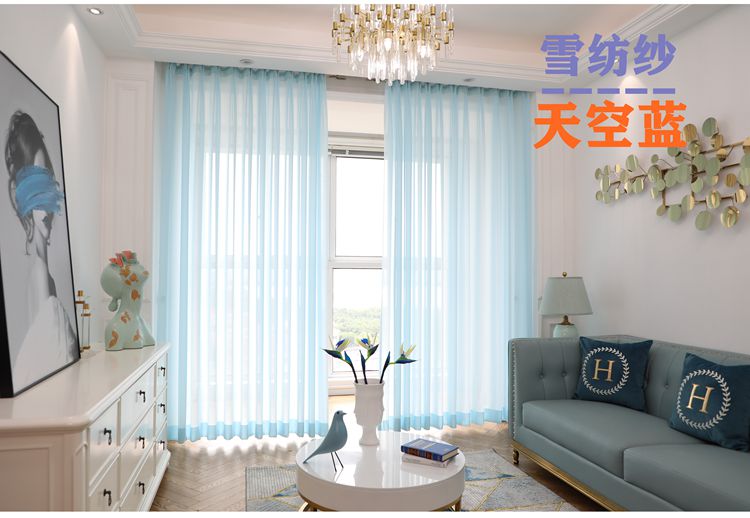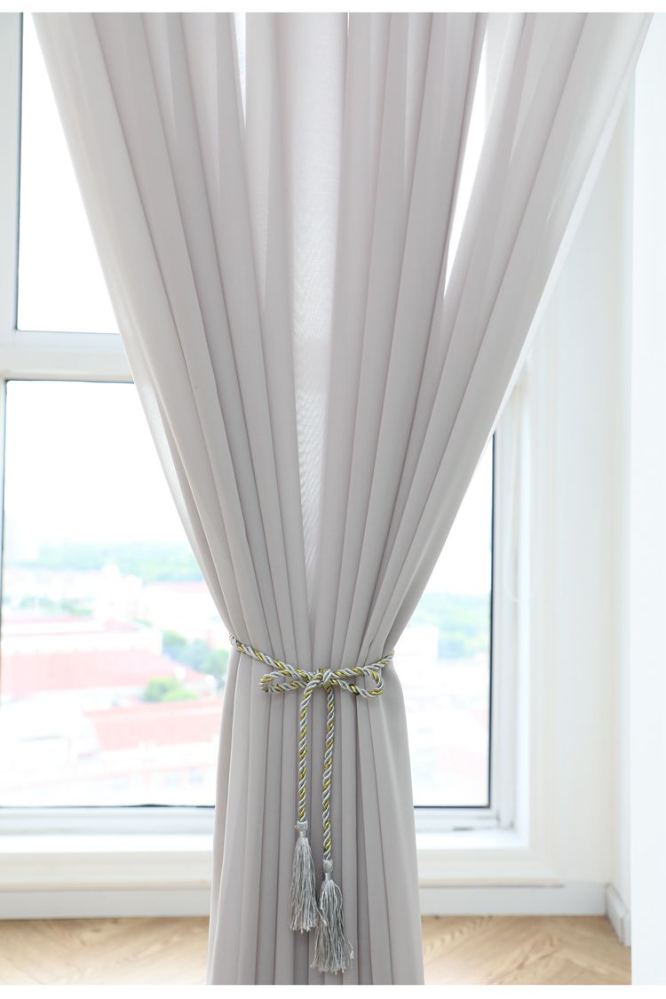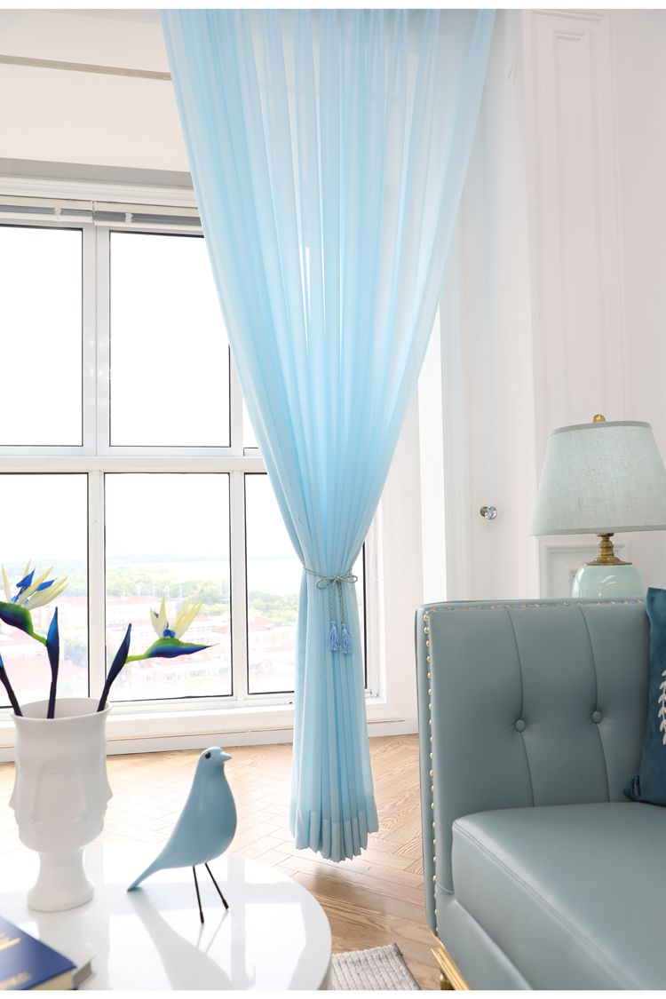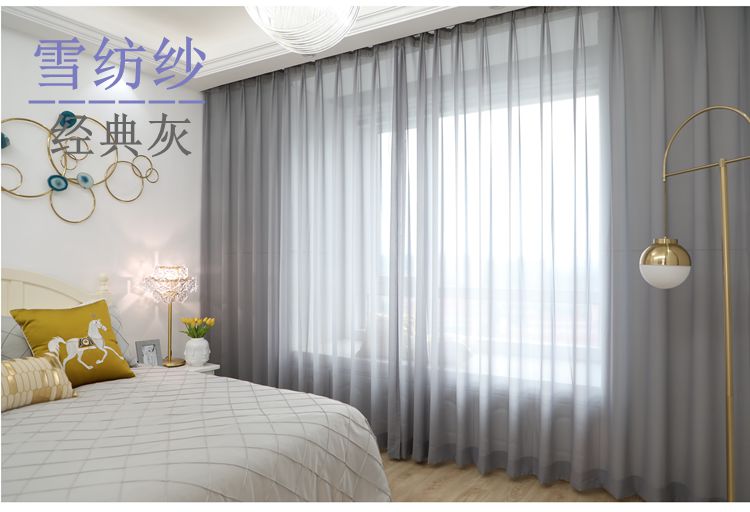 커튼 거즈 흰색 거즈 얇은 천 완제품 흰색 모래 베드룸 창 발코니 간단한 침실 거실 쉬폰