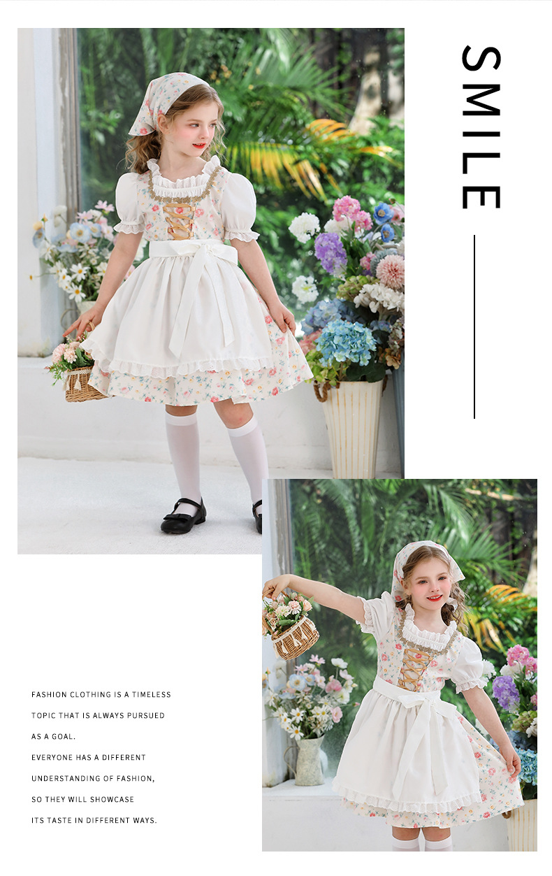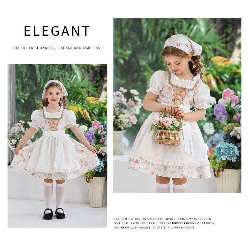 초원 식민지 어린이 의상 맥주 축제 메이드 복장 목가적 인 소녀 로리타 농장 Dirndl 드레스스토어 가기