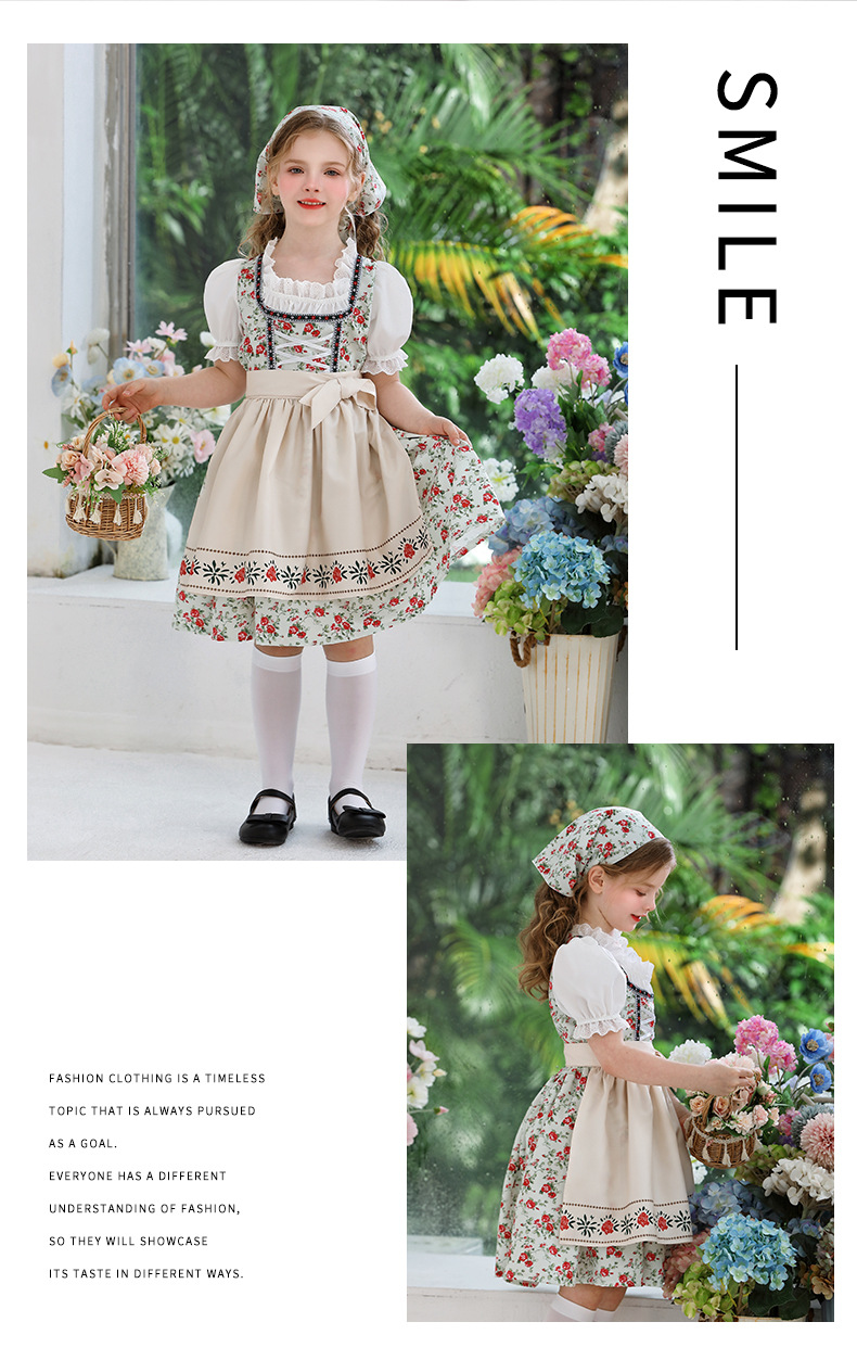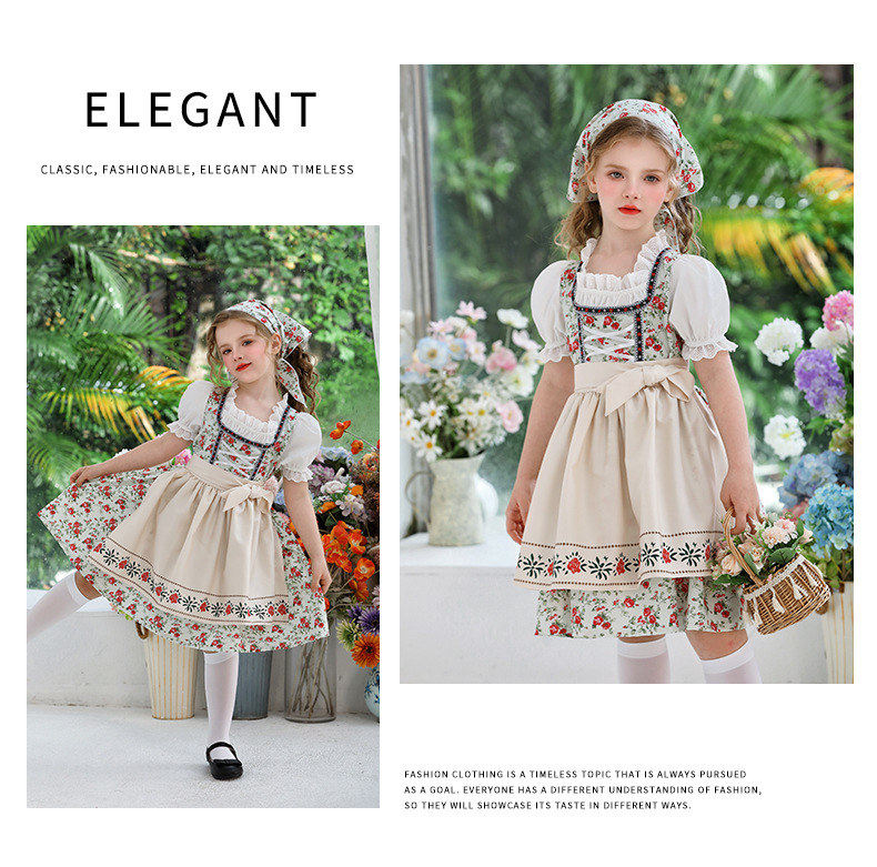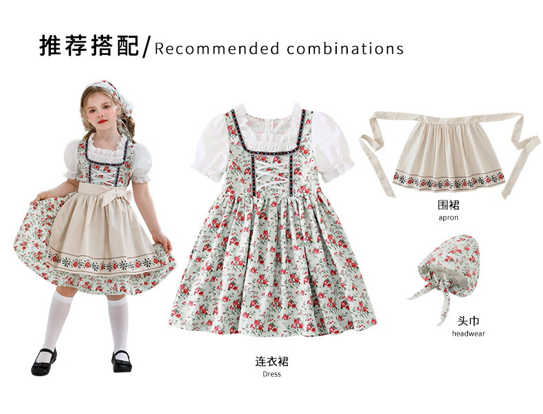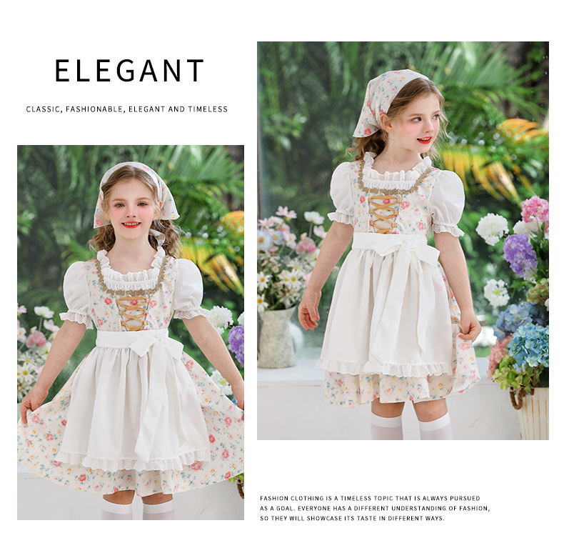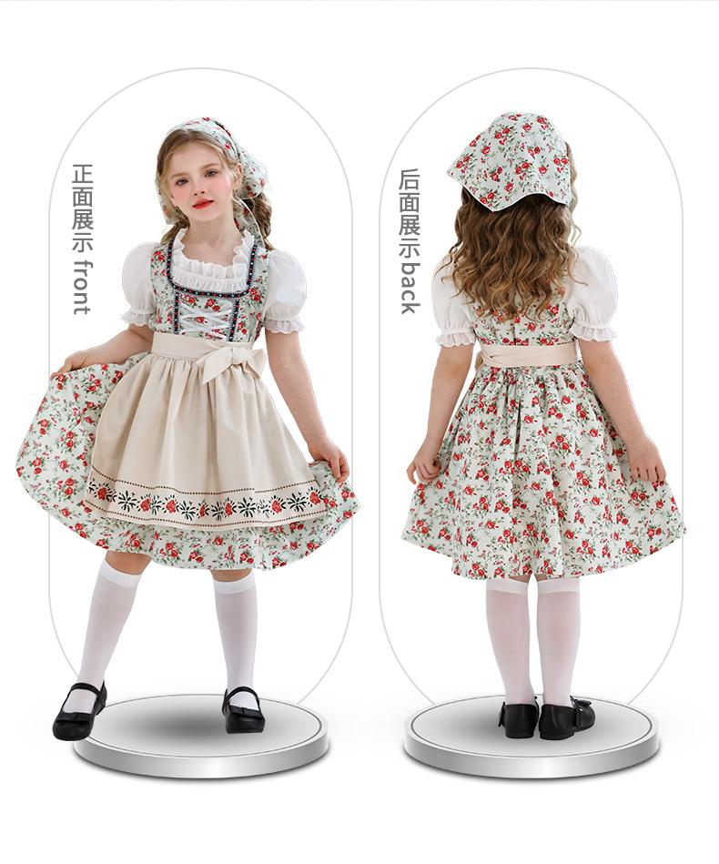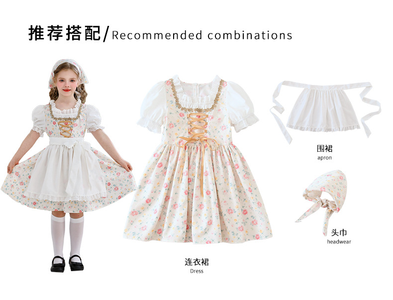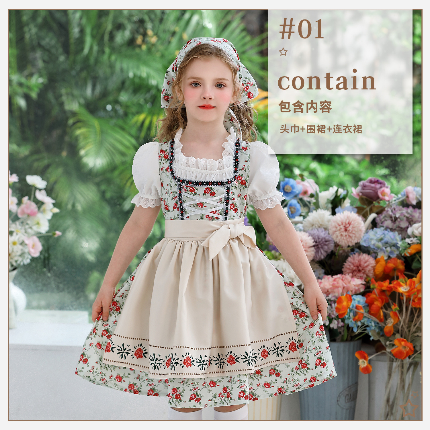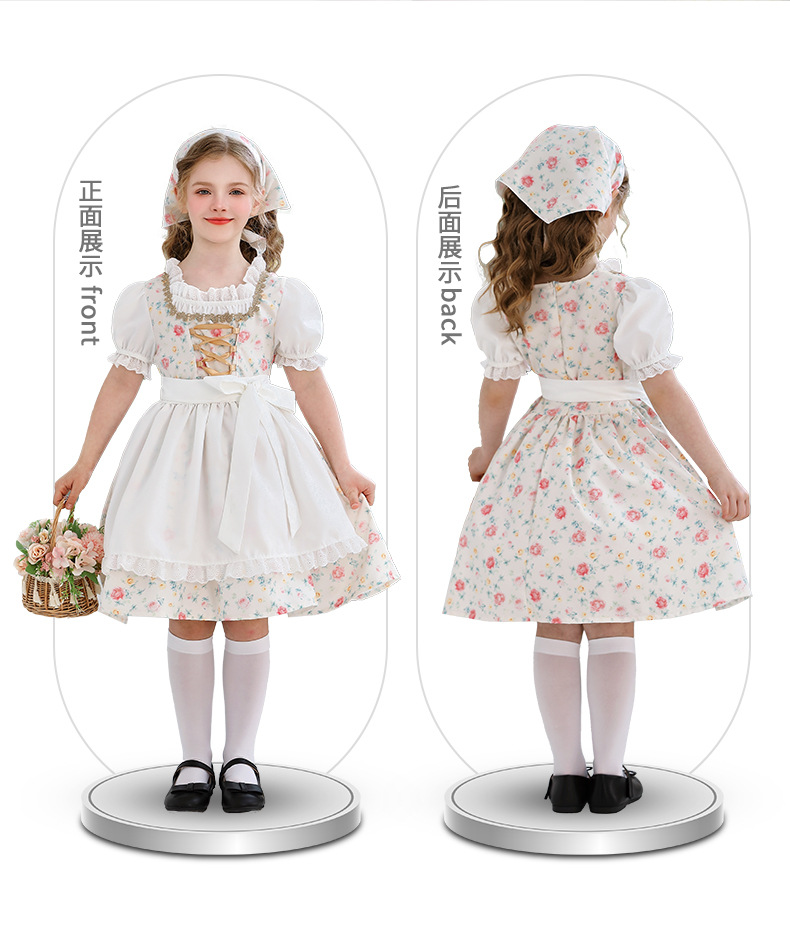 초원 식민지 어린이 의상 맥주 축제 메이드 복장 목가적 인 소녀 로리타 농장 Dirndl 드레스