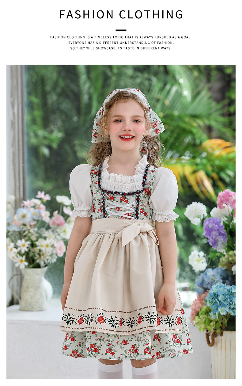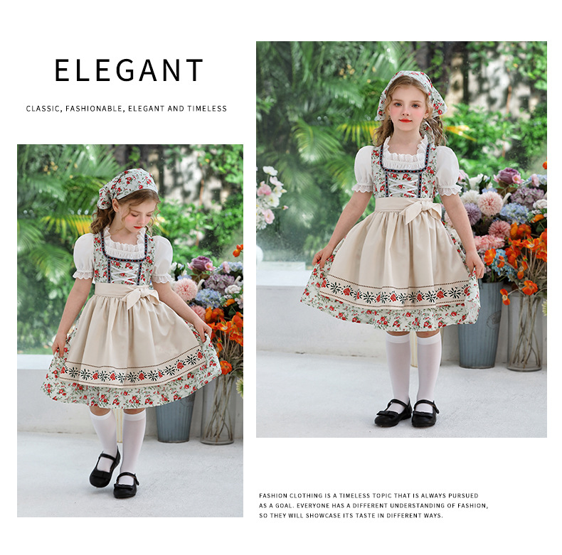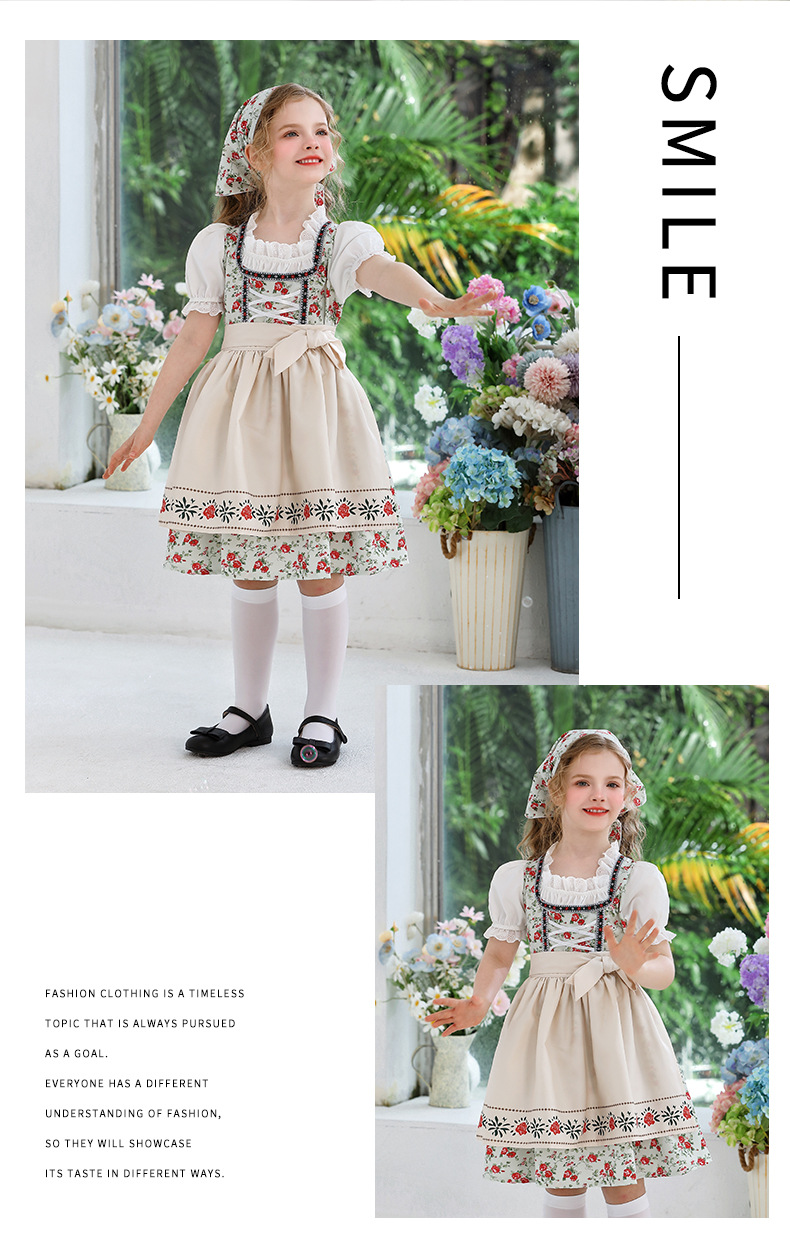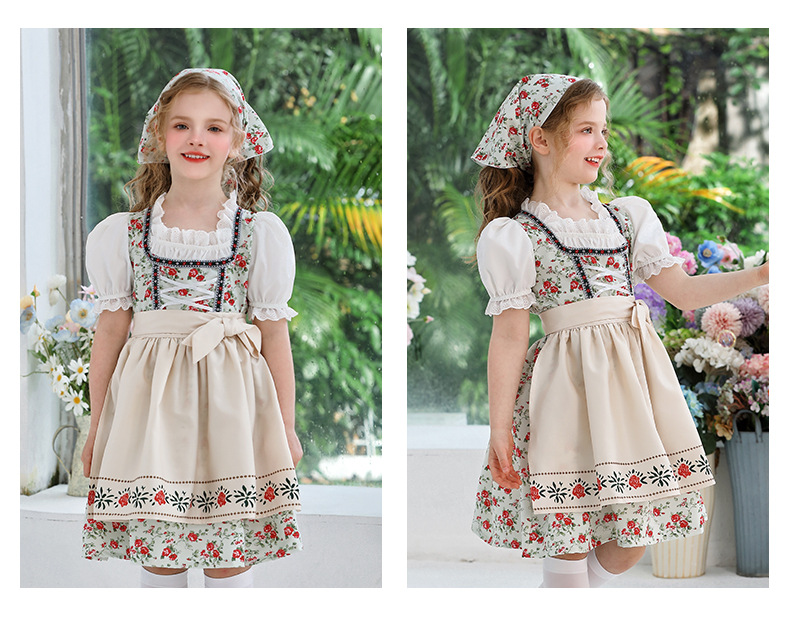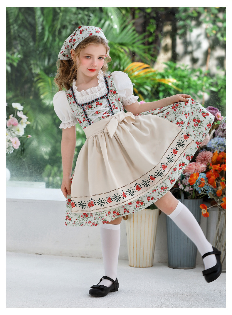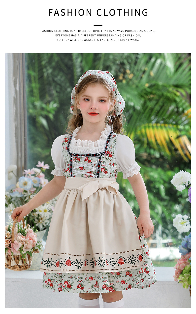 초원 식민지 어린이 의상 맥주 축제 메이드 복장 목가적 인 소녀 로리타 농장 Dirndl 드레스