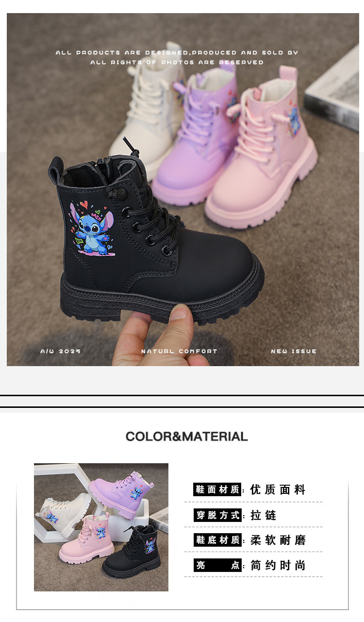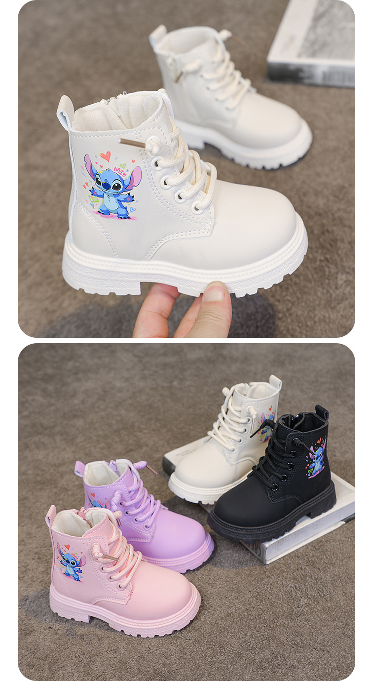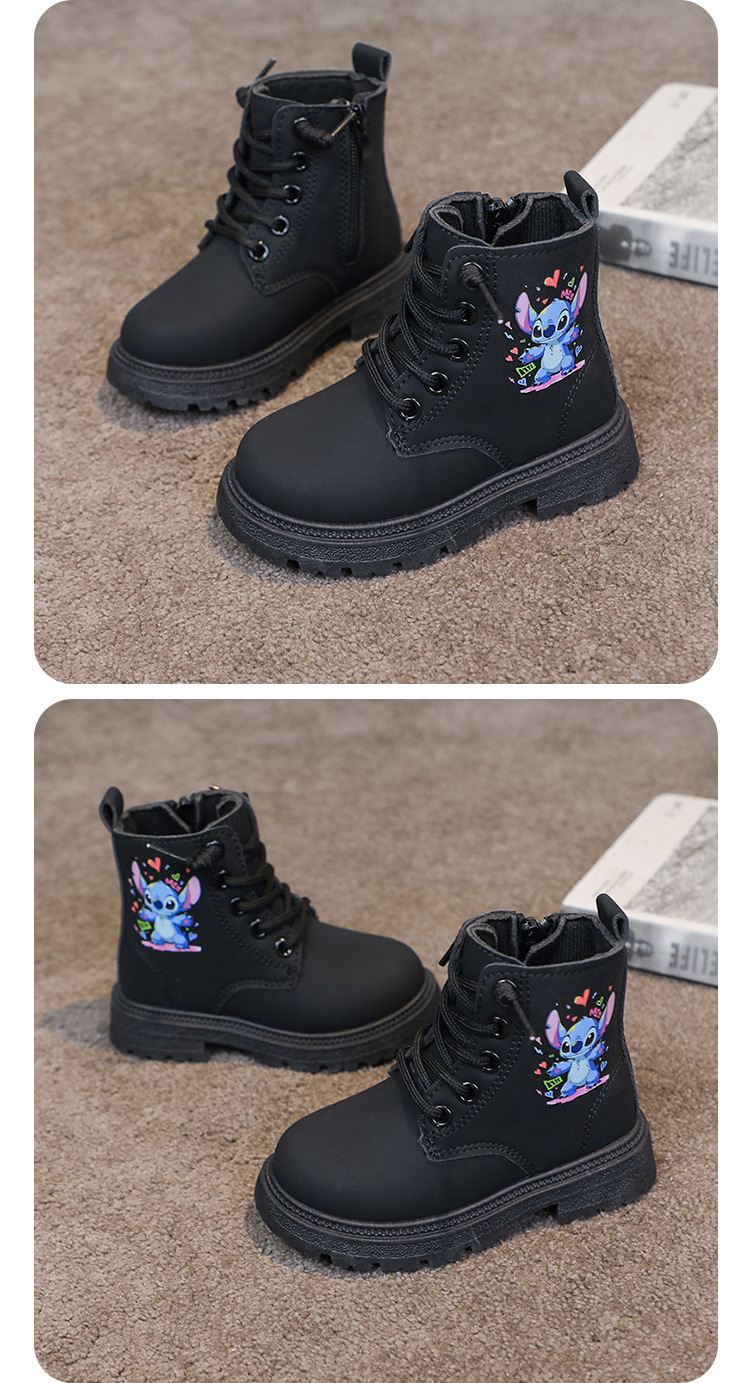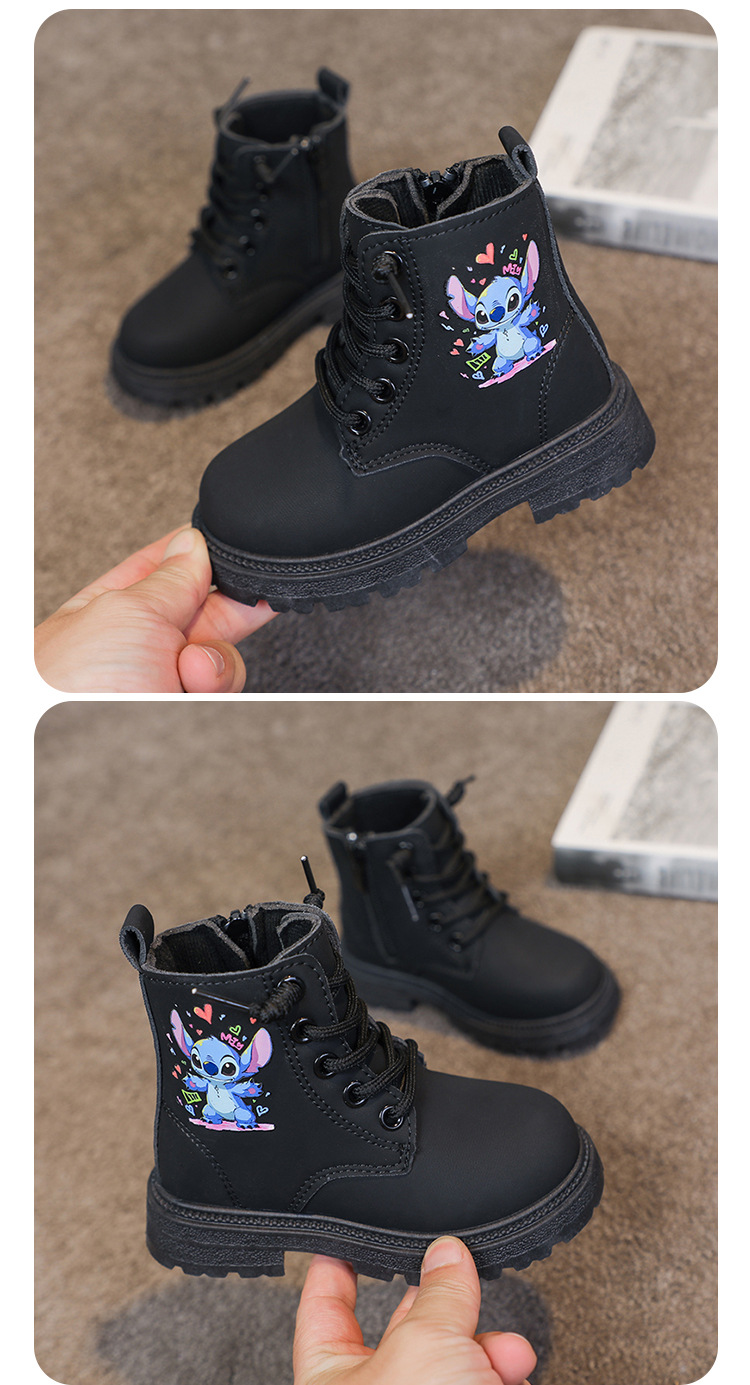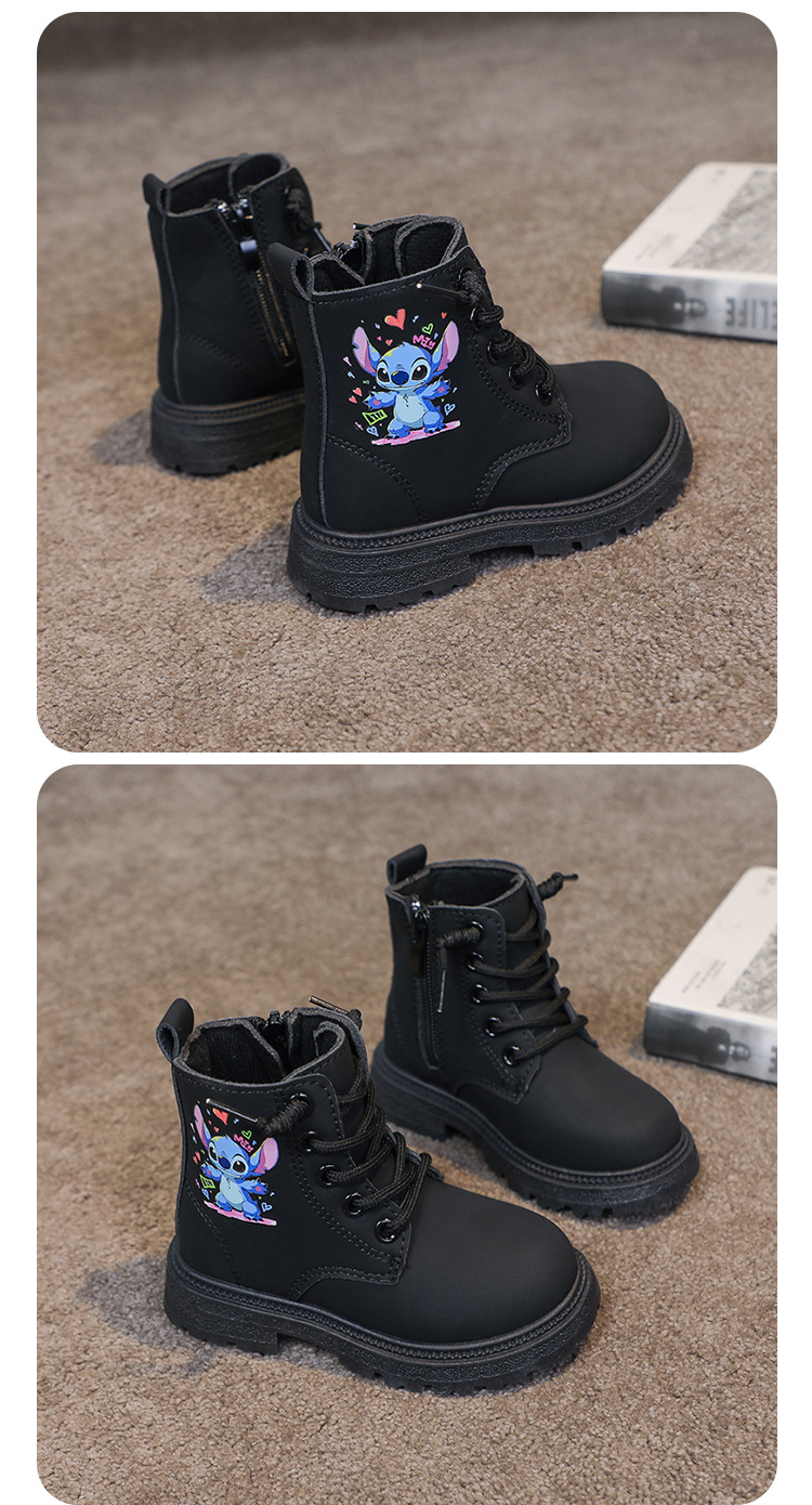 봄과 가을 캐주얼 소년과 소녀 다목적 어린이 가죽 부츠 마틴 부츠 어린이 만화 방수 신발 가죽 짧은 부츠