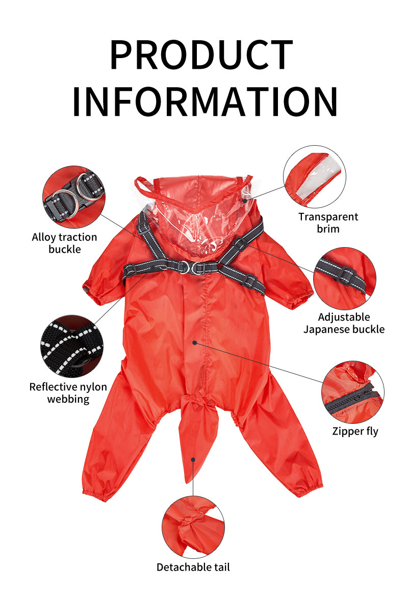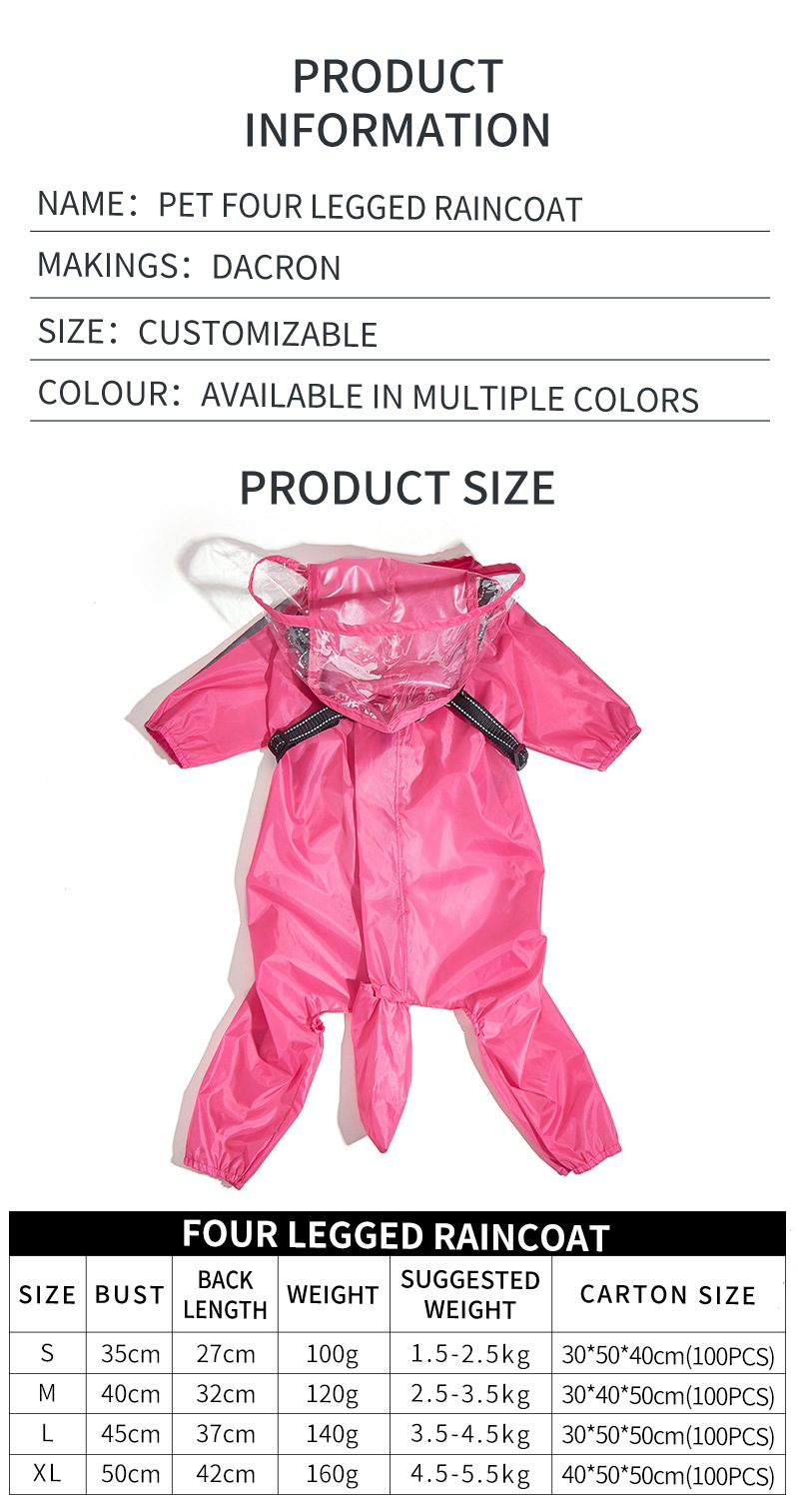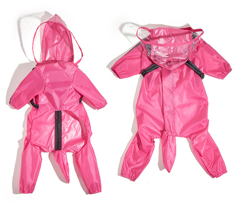 가슴과 등받이 견인 일체형 소형견 애완동물 비옷, 착용하기 쉬운 개 비옷, 고양이와 개를 위한 네발 비옷, 야외용