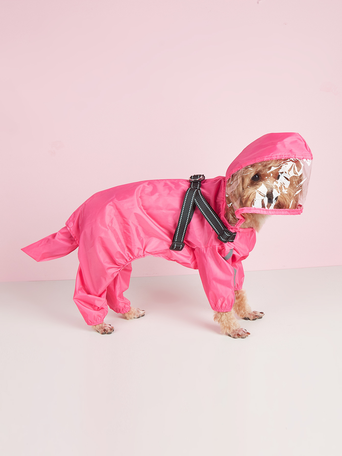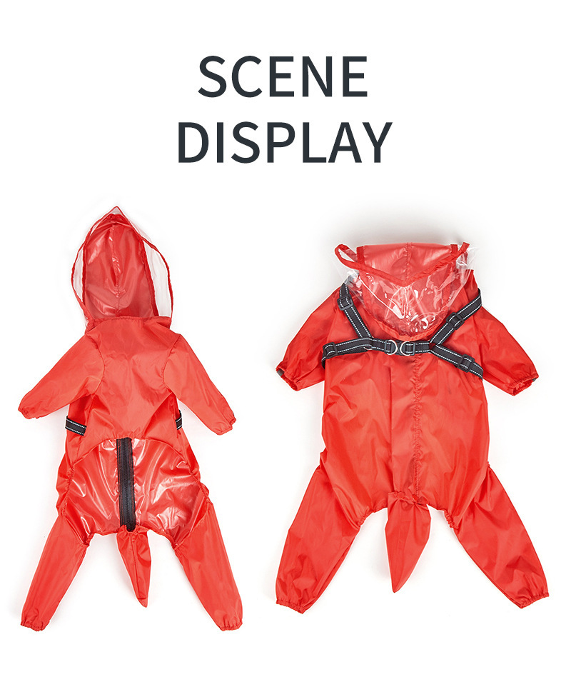 가슴과 등받이 견인 일체형 소형견 애완동물 비옷, 착용하기 쉬운 개 비옷, 고양이와 개를 위한 네발 비옷, 야외용스토어 가기