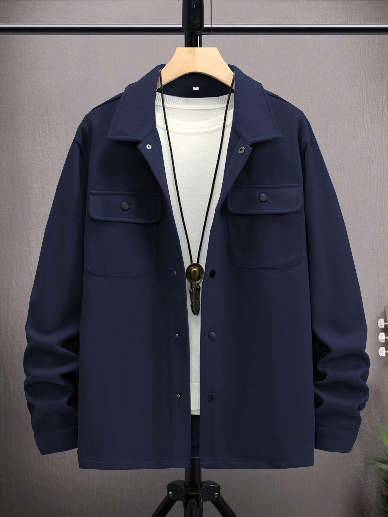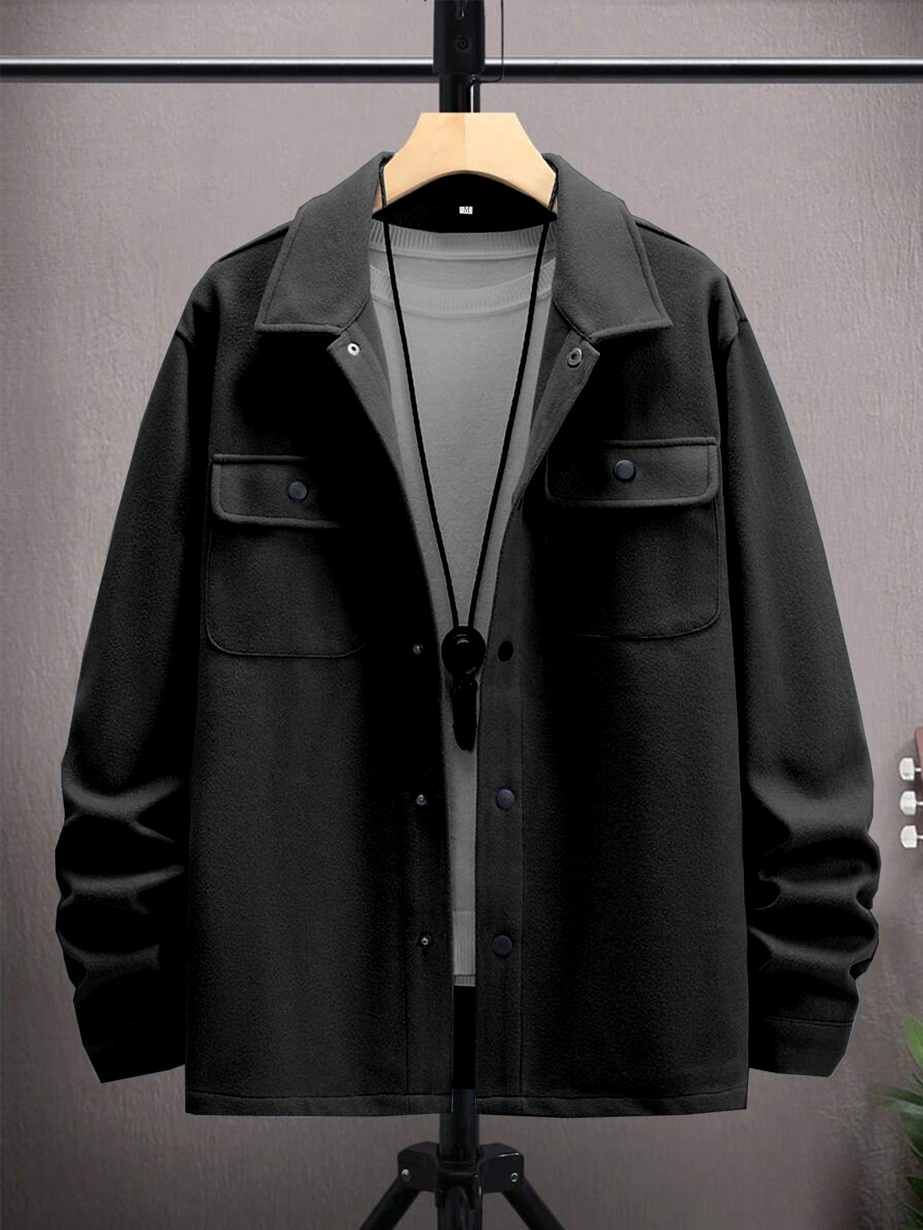 2025 가을 신작 남성 모직 재킷 솔리드 컬러 재킷 코트 옷깃 버튼 프론트 플랩 포켓 코트스토어 가기