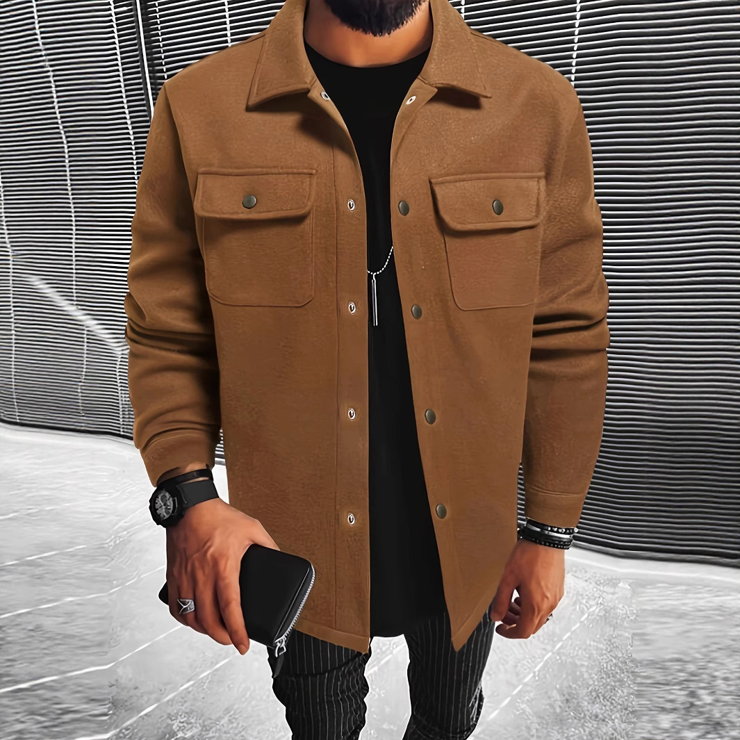 2025 가을 신작 남성 모직 재킷 솔리드 컬러 재킷 코트 옷깃 버튼 프론트 플랩 포켓 코트