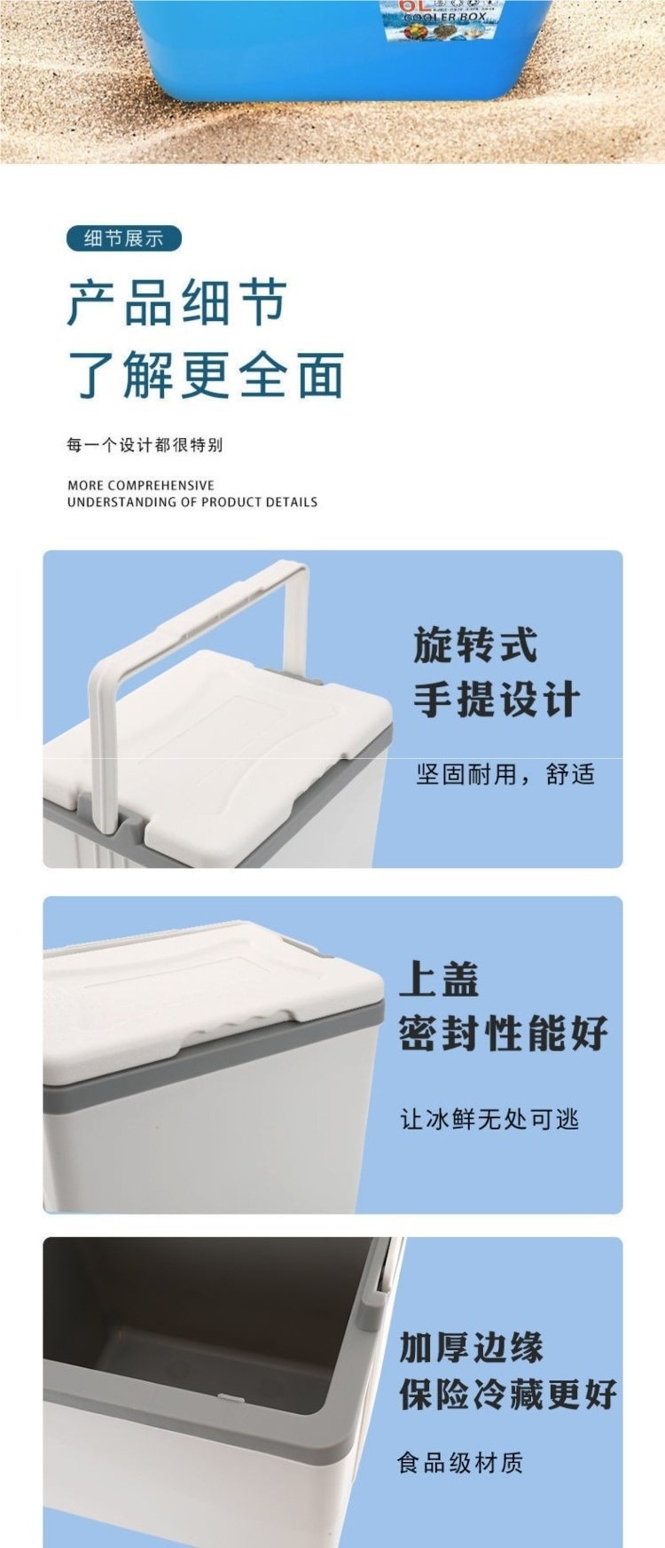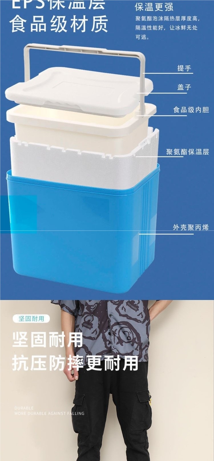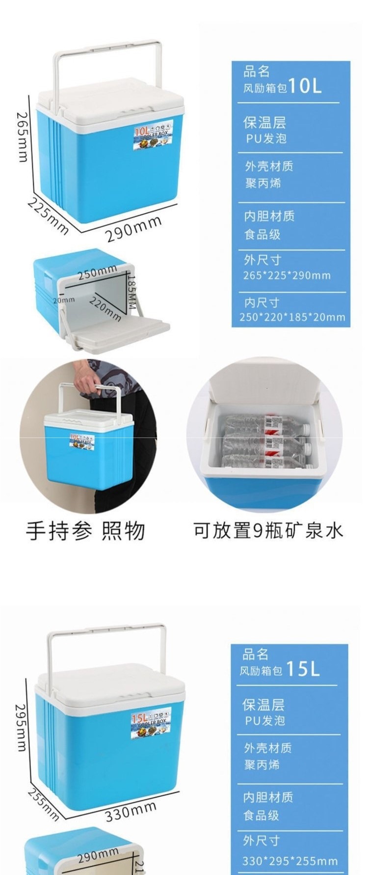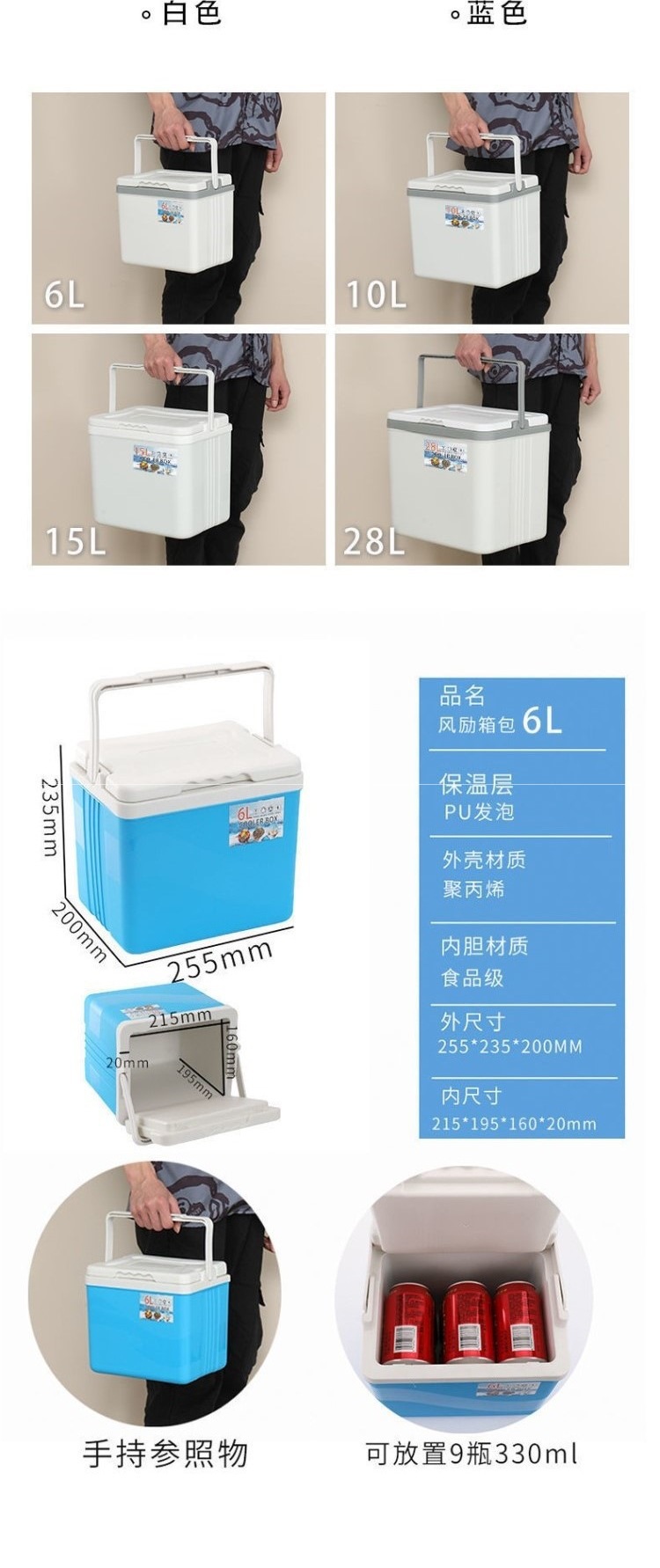 • 파란색 3L 고온 디스플레이 모델에는 아이스백 6개와 5면 고급 PU가 함께 제공됩니다.