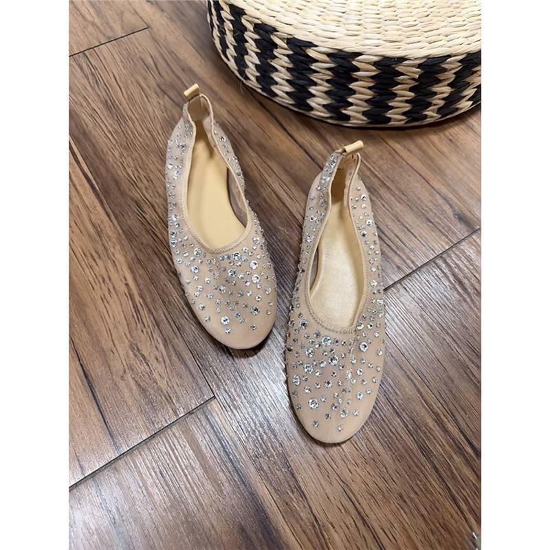 스팟상품! 요정 프렌치 라인스톤 메쉬 슈즈 플랫 여름 통기성 틈새 하이엔드 편안한 슬립온스토어 가기