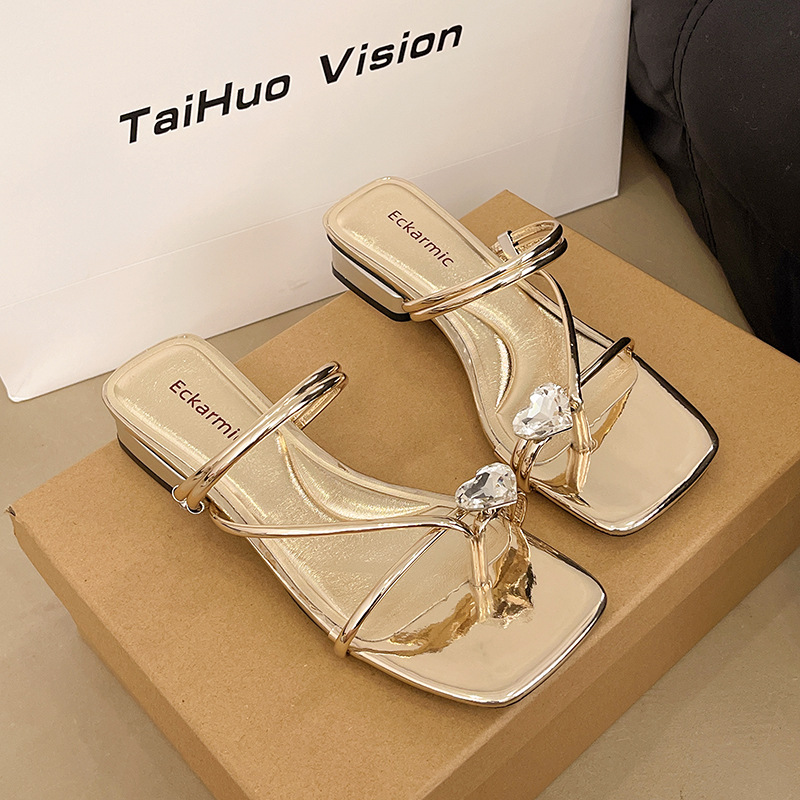 여성용 여름 슬리퍼 2025 새로운 스타일 아름답고 패셔너블한 스커트와 두꺼운 굽 한국식 슬립온 샌들