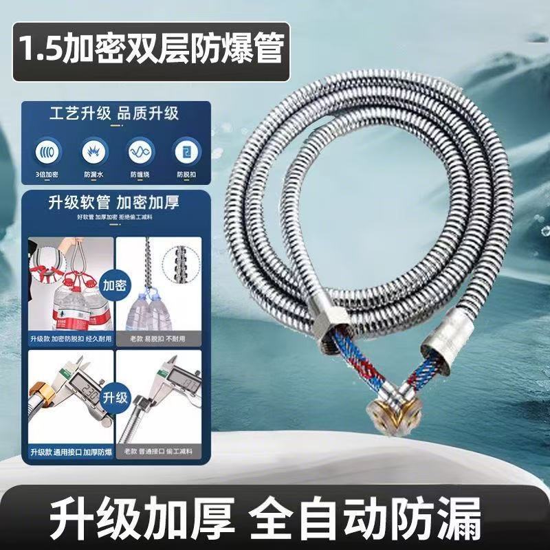 스테인레스 스틸 샤워 파이프 이중층 방폭형 레인 샤워 호스 1.5m 노즐 목욕 금속 링크 파이프스토어 가기