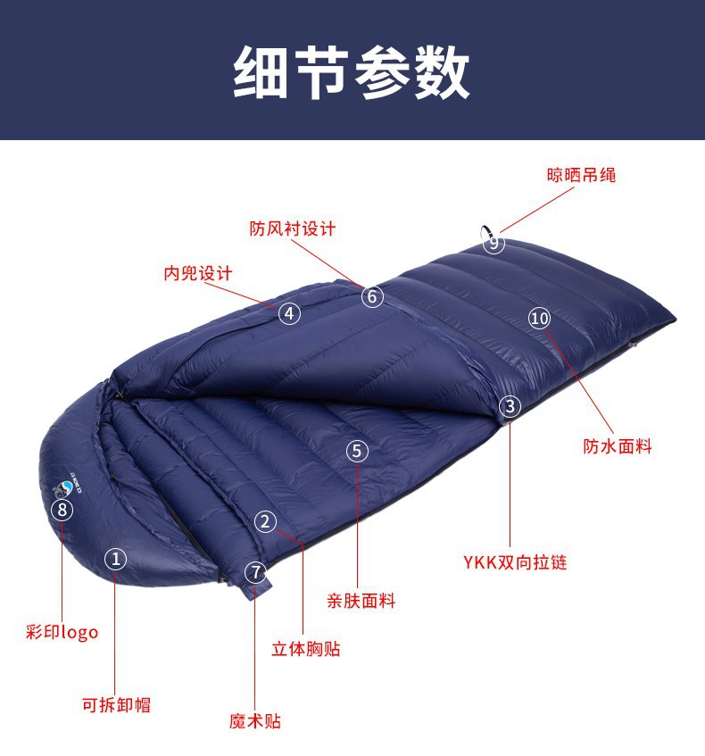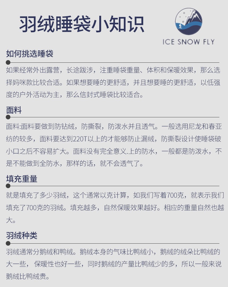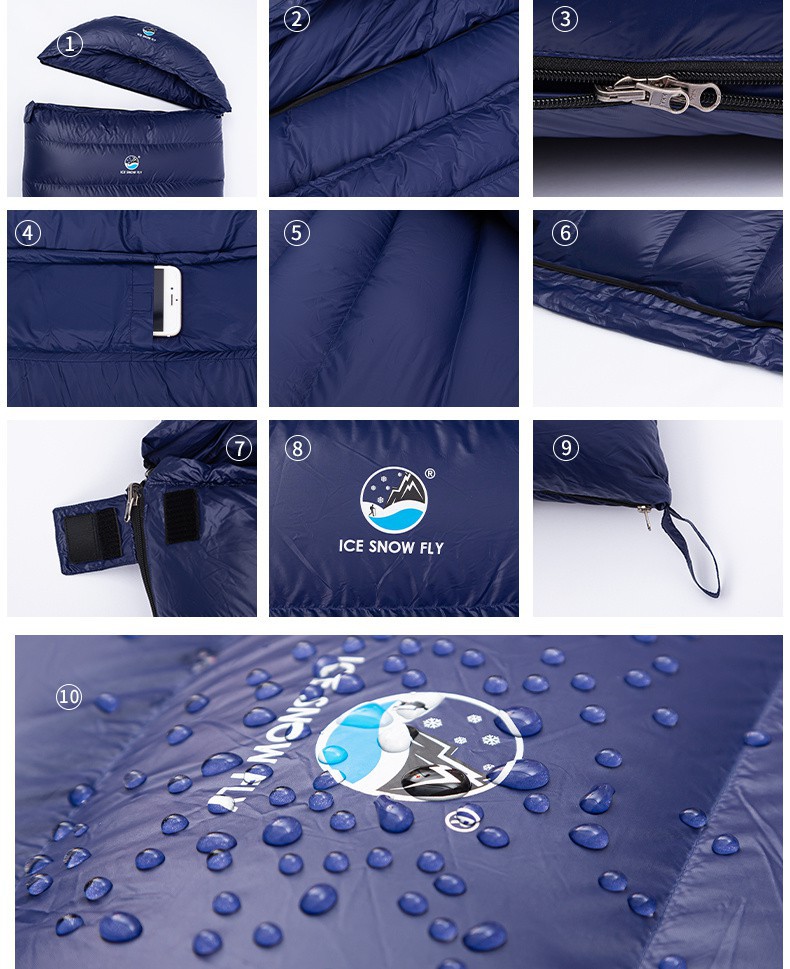 ICESNOWFLY 얼음과 눈 플라이 다운 침낭 -40도 야외 초경량 캠핑 성인 플러스 따뜻한 거위 다운스토어 가기