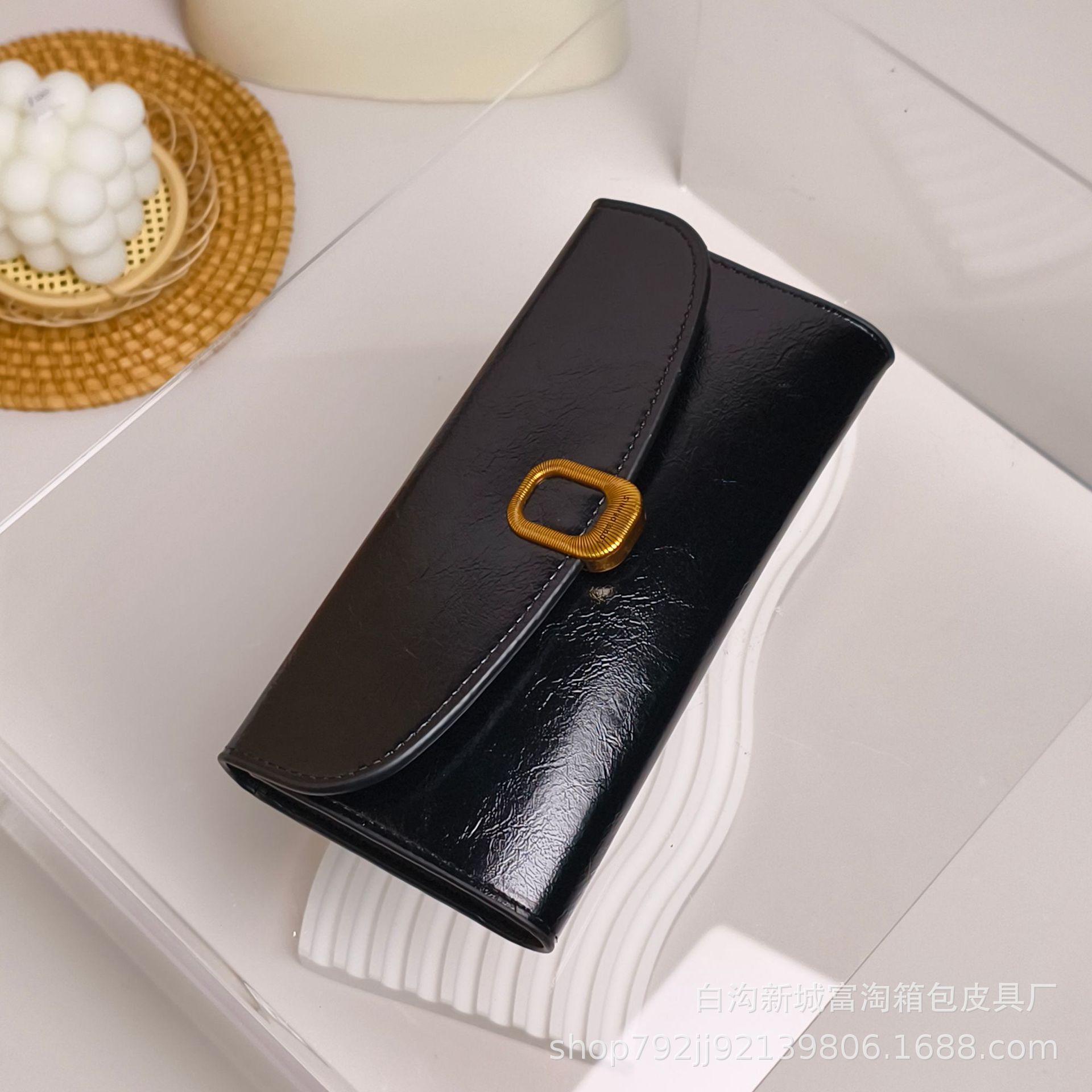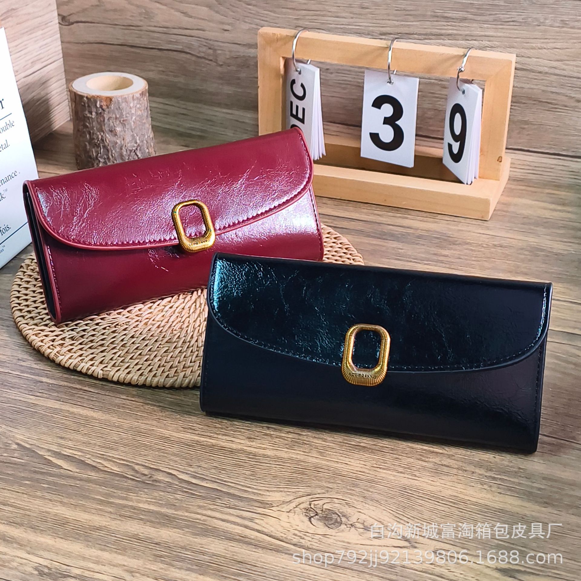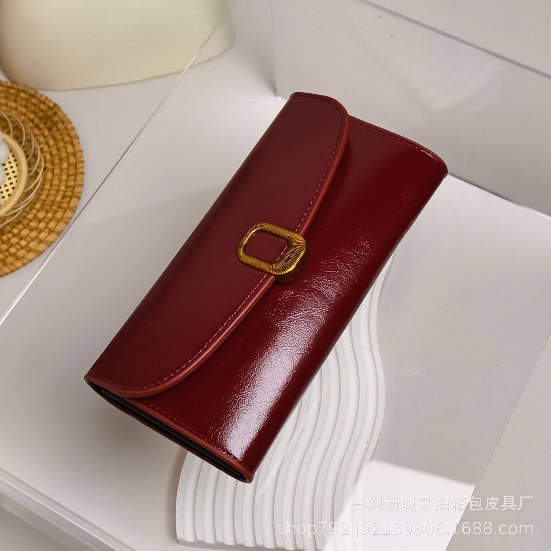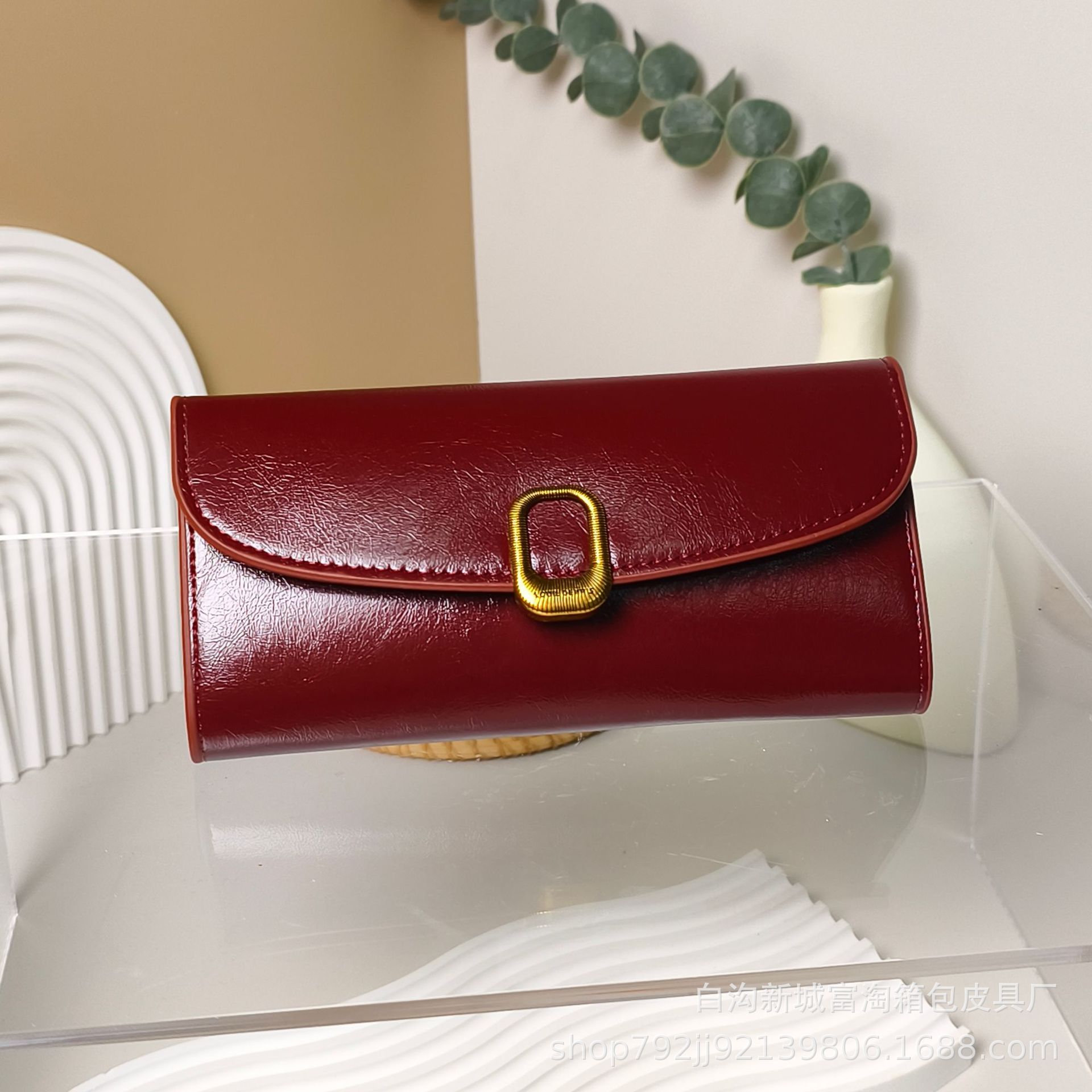 재고 있음 여성용 지갑 절묘한 긴 버클 멀티 카드 슬롯 동전 지갑 오일 가죽 지폐 지갑스토어 가기