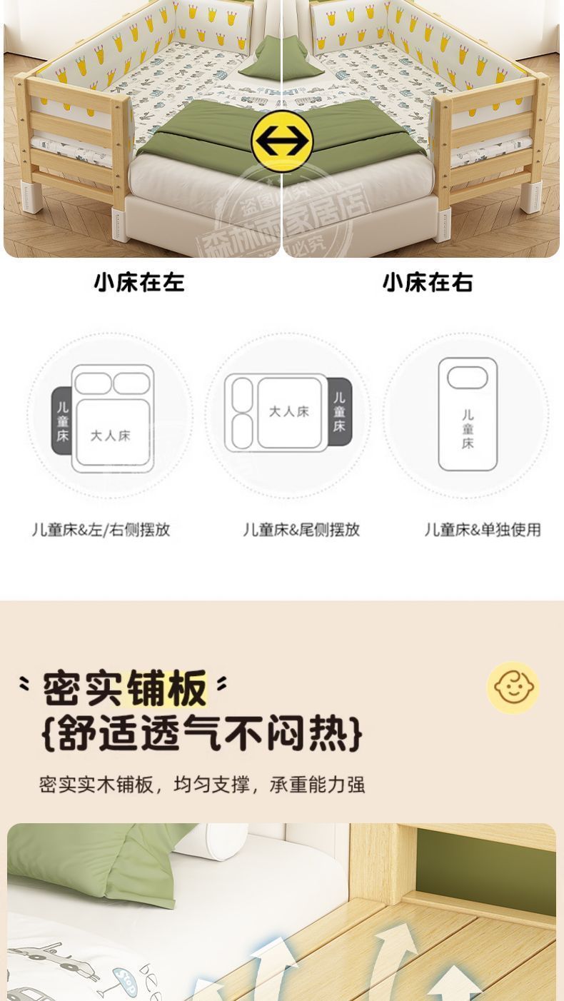 단단한 나무 아기 확장 접합 침대와 가드 레일 아기 소년 유아용 침대 소녀 싱글 침대 옆 어린이 대형 침대 도매스토어 가기