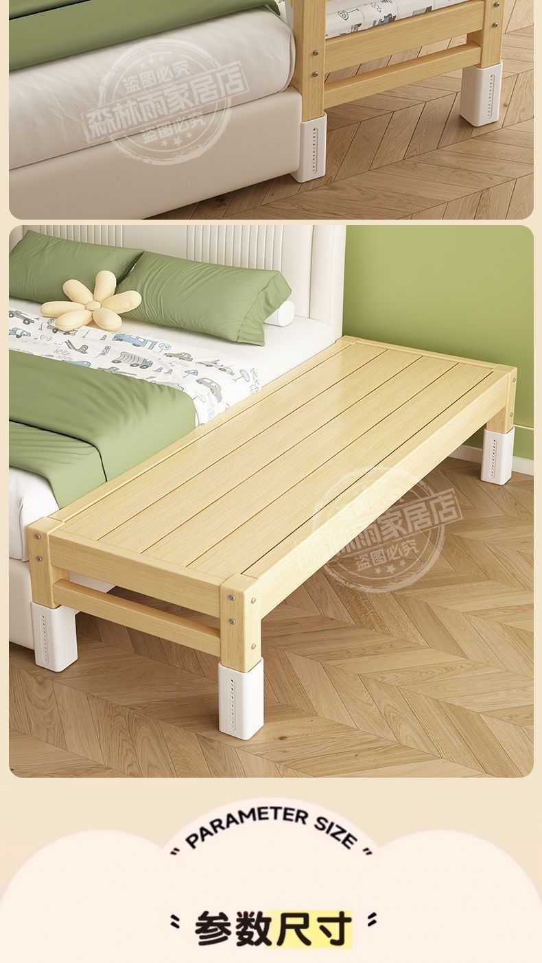 • 리얼 통나무 싱글 침대 + 삼면 가드레일 + 코코넛 야자 매트리스 + 침대 옆