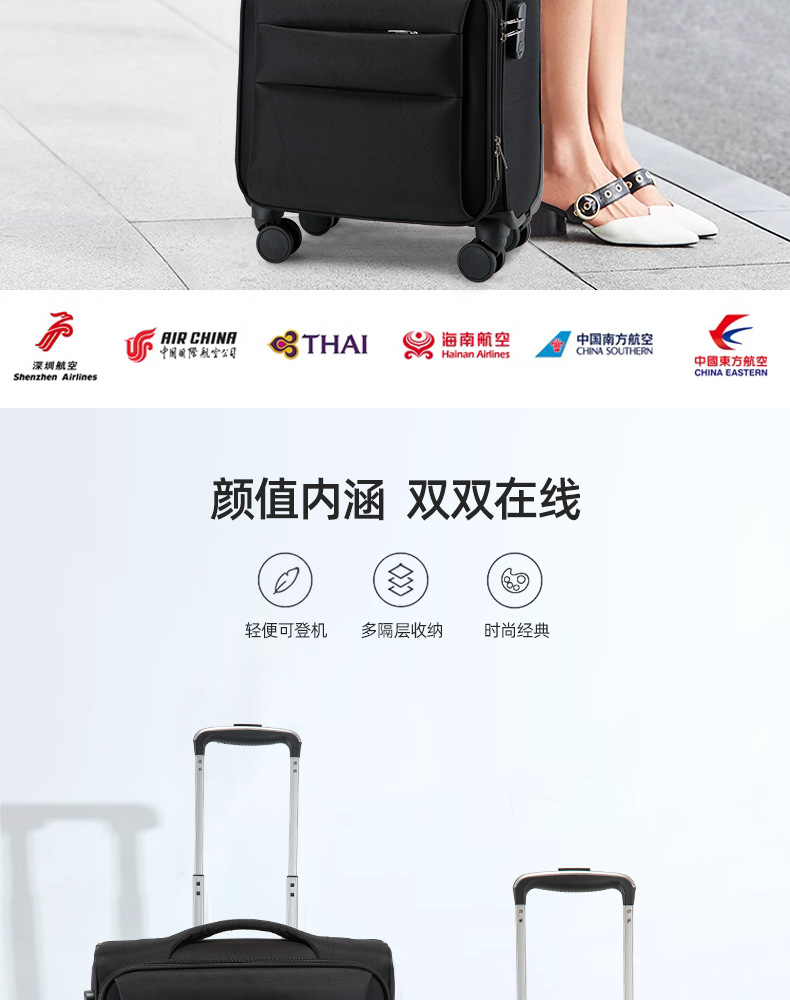소형 전면 개방형 경량 여행가방 고속철도 비행기 탑승 옥스포드 천 트롤리 케이스 비즈니스 여행가방 16inch