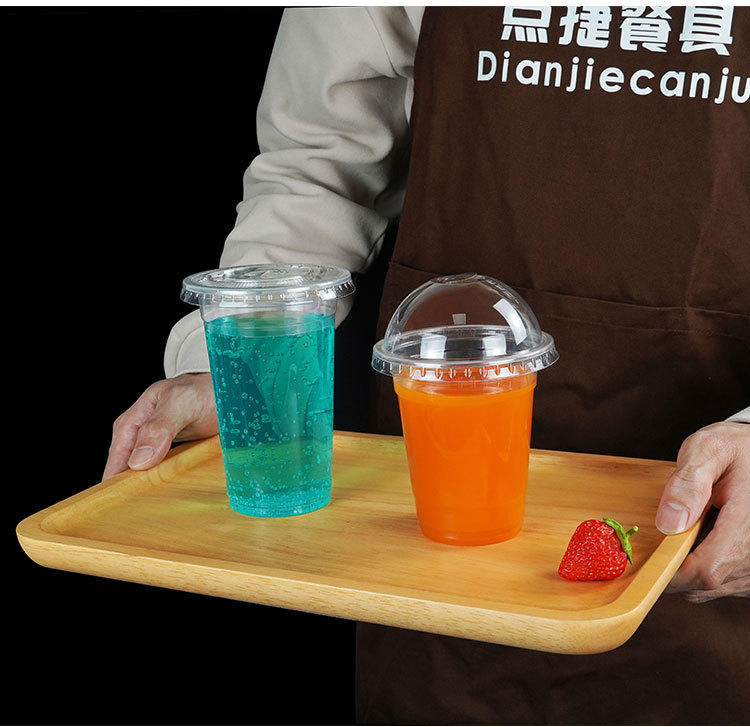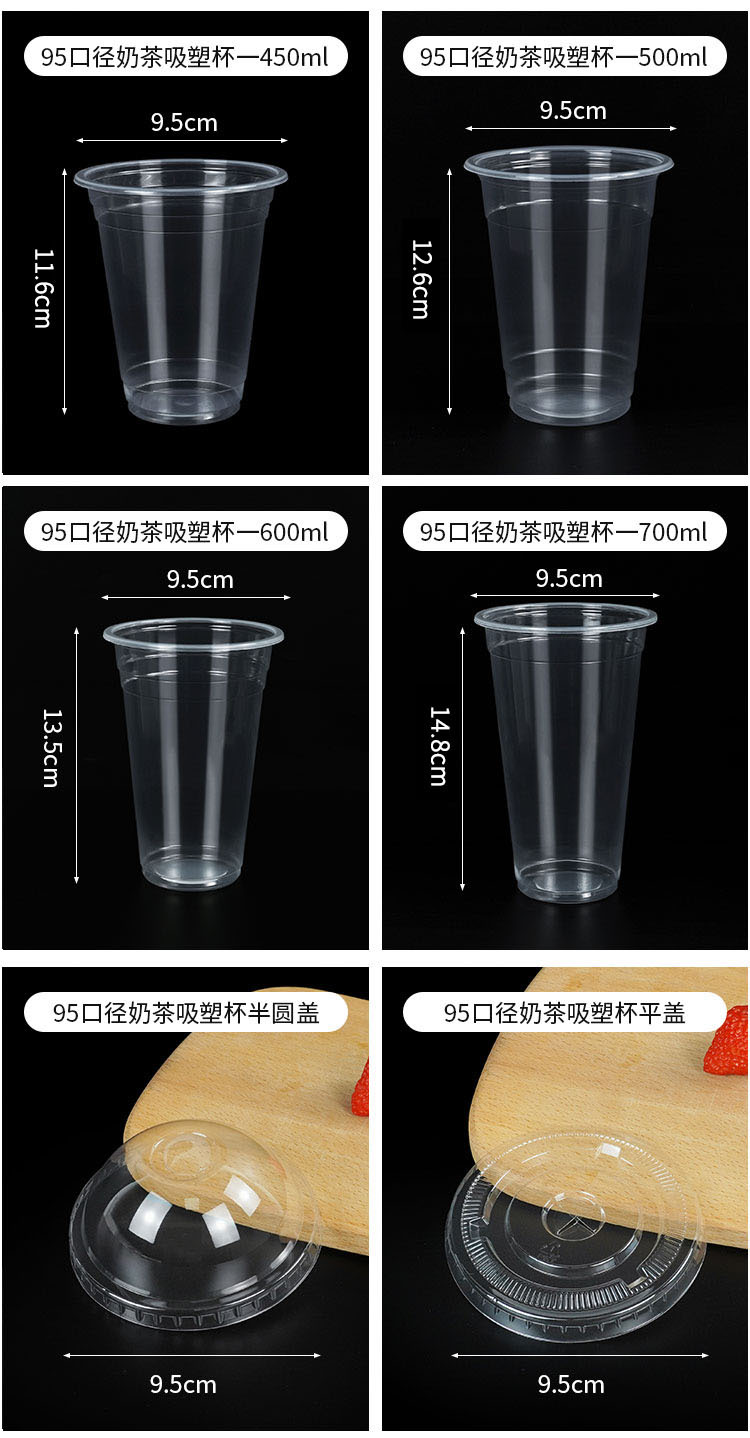 뚜껑이 있는 일회용 95구경 밀크티 컵, 상업용 투명 플라스틱 주스 컵, 포장된 코코넛 주스 녹두 콘 컵