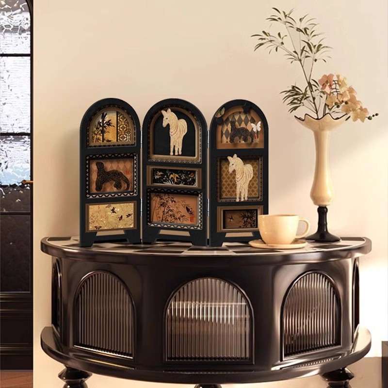중세 스타일 데스크탑 스크린 장식품, 복고풍 거실 TV 캐비닛 장식 그림, 현관 측면 캐비닛, 프랑스 작은 장식품스토어 가기
