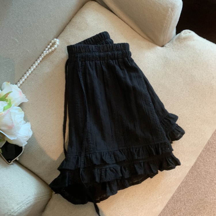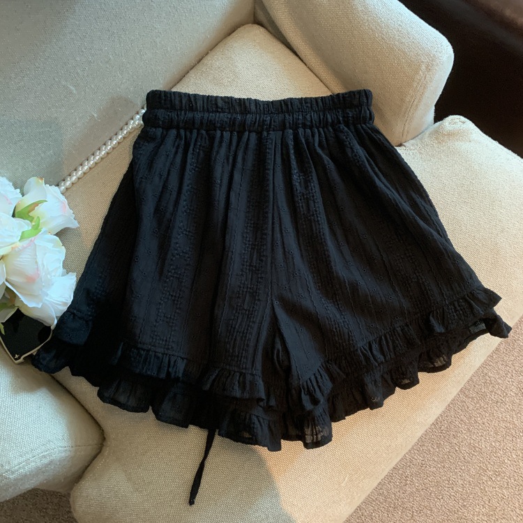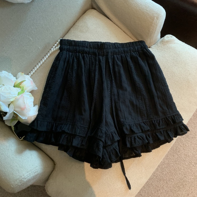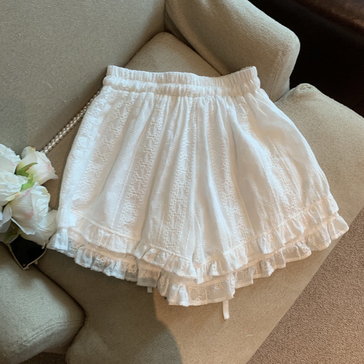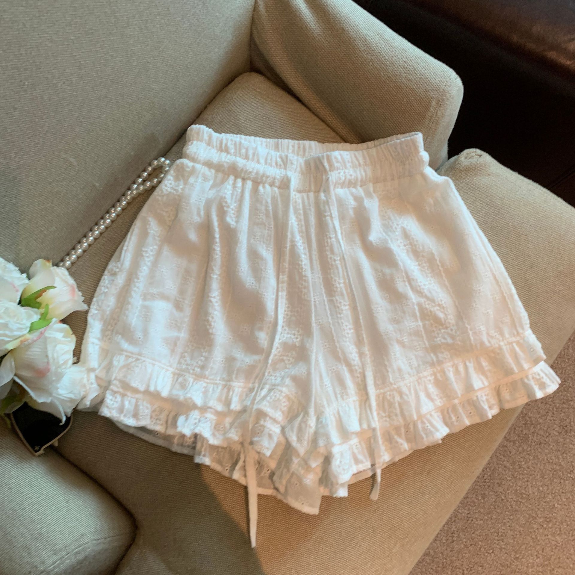 2025 새로운 패션 프렌치 레이스 와이드 레그 팬츠 여성 여름 루즈 캐주얼 바닥 라인 반바지 핫팬츠