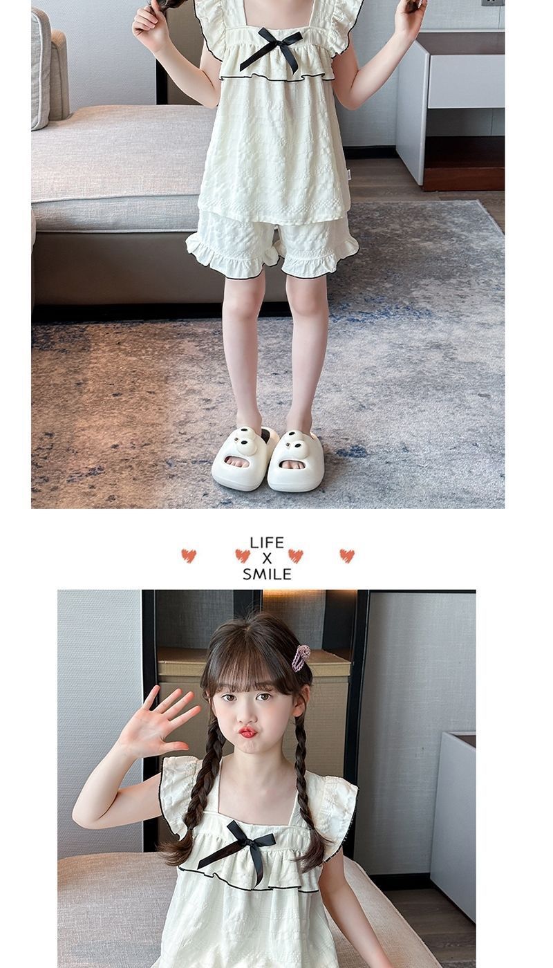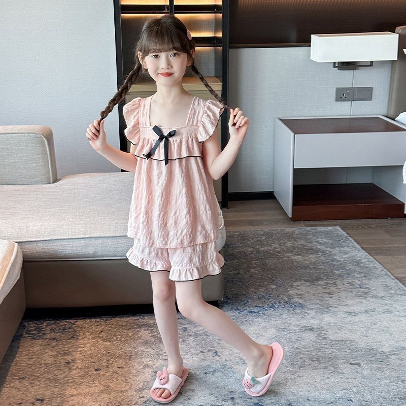 공주 스타일 어린이 잠옷 여성 여름 반팔 반바지 2025 새로운 달콤한 소녀 어린 소녀 가정 의류 세트