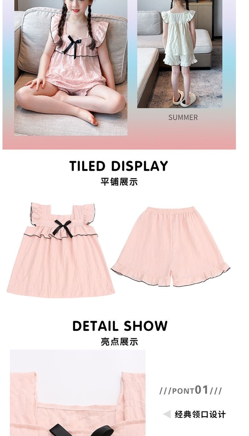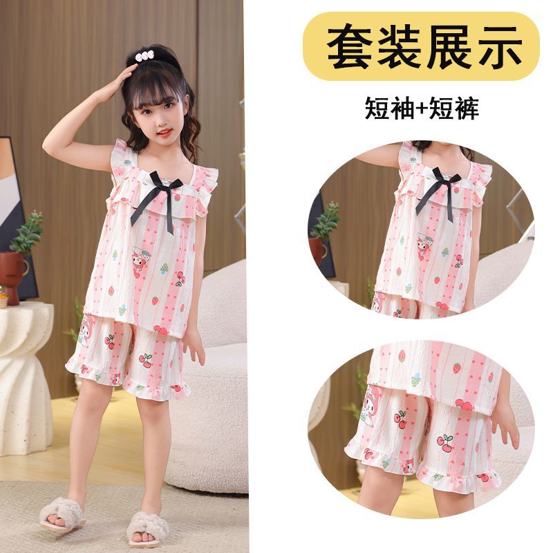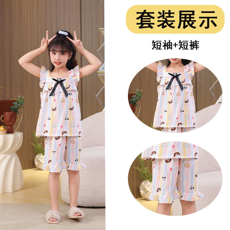 공주 스타일 어린이 잠옷 여성 여름 반팔 반바지 2025 새로운 달콤한 소녀 어린 소녀 가정 의류 세트스토어 가기