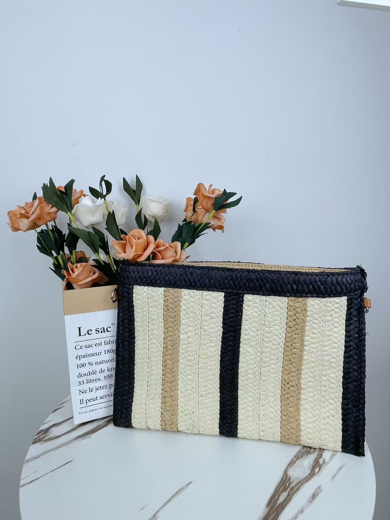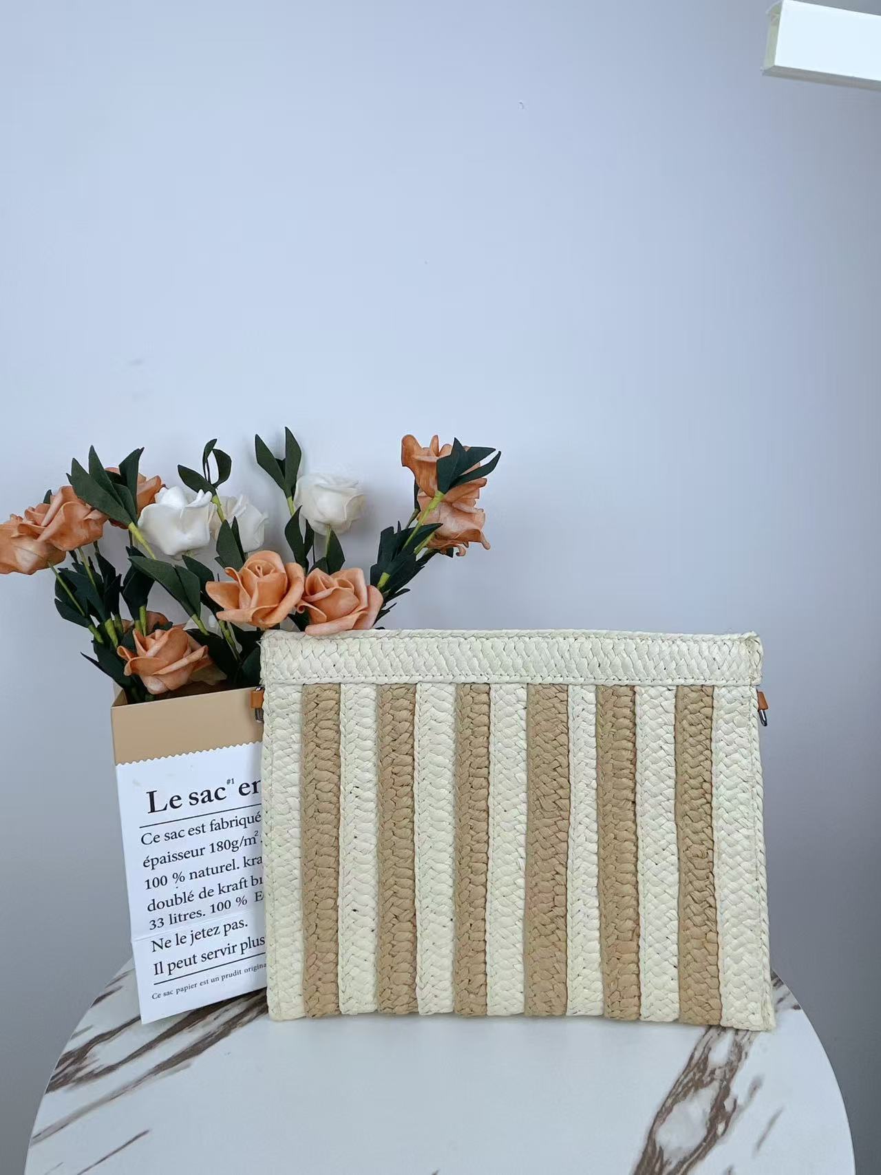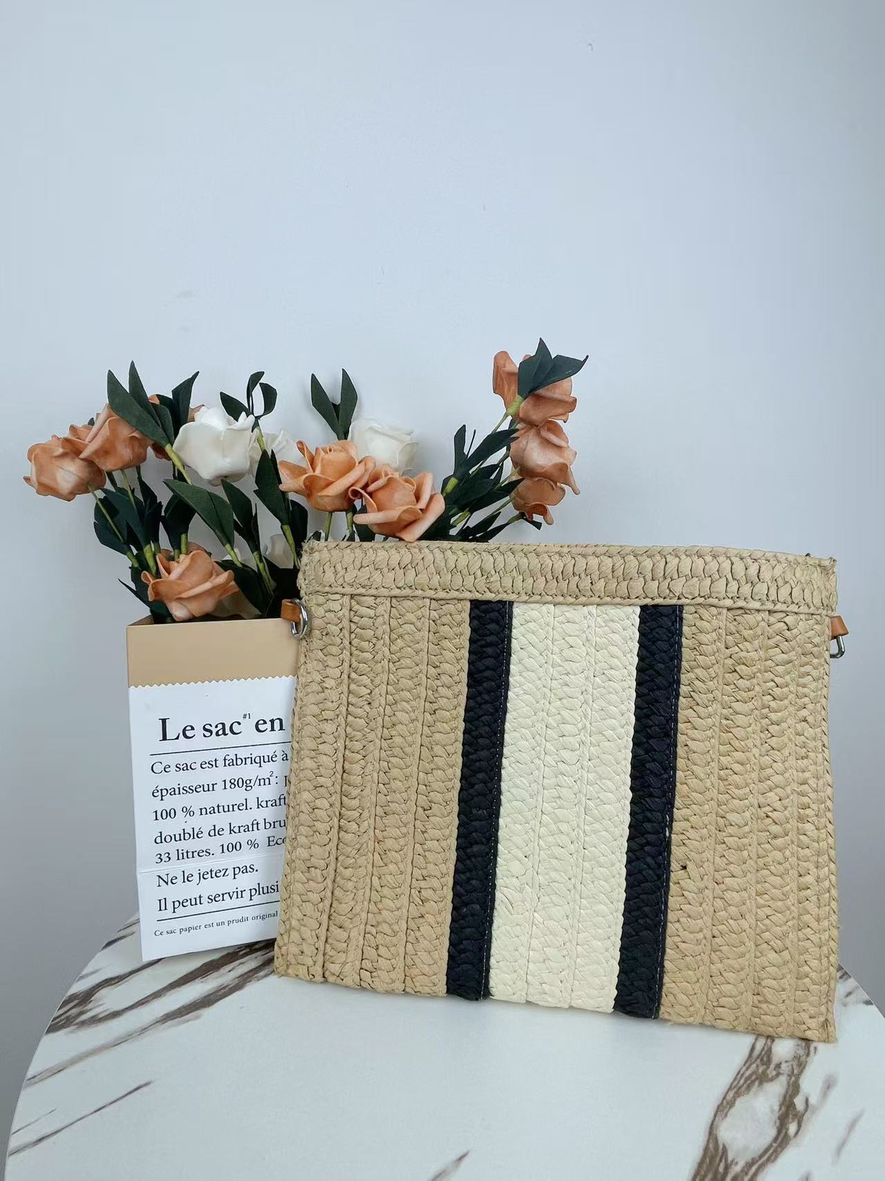 가방 드롭 배송 간단하고 다재다능한 종이 로프 짠 가방 지퍼 스트라이프 도시 단순 수제 종이 로프 짠 가방스토어 가기