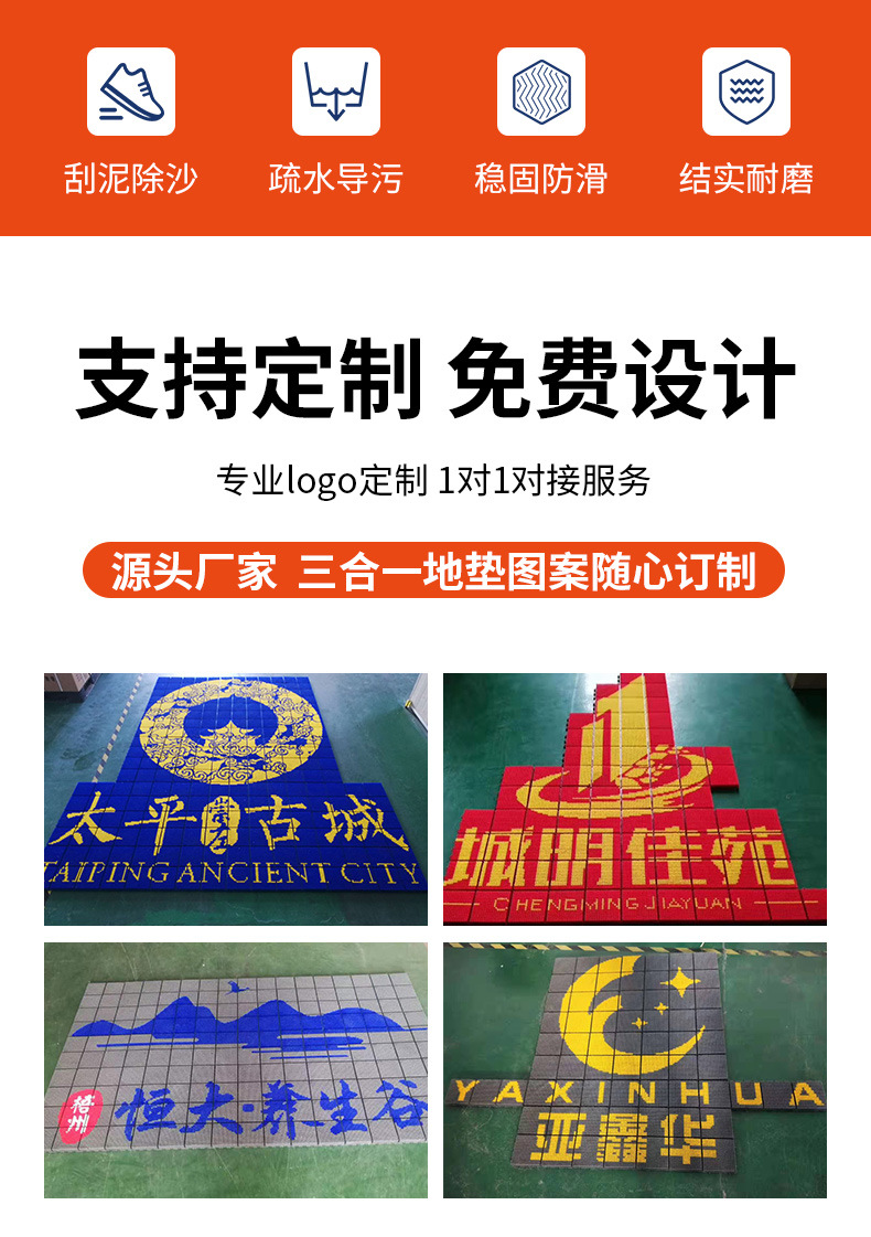 제조업체 맞춤형 3-in-1 바닥매트, 야외 호텔 및 쇼핑몰 바닥매트, 현관문용, 오염 방지, 미끄럼 방지, 방수 매트
