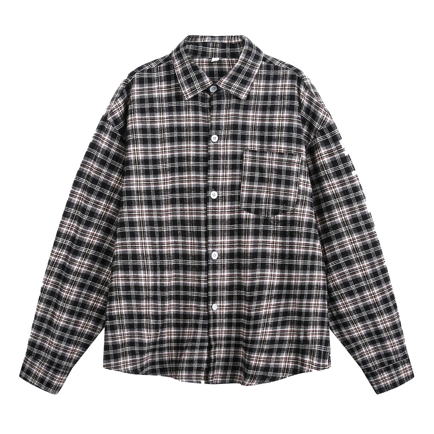 가을 기본 격자 무늬 옷깃 포켓 셔츠 커플 재킷 유행 남성을위한 미국 복고풍 대비 격자 무늬 격자 무늬 긴팔 셔츠