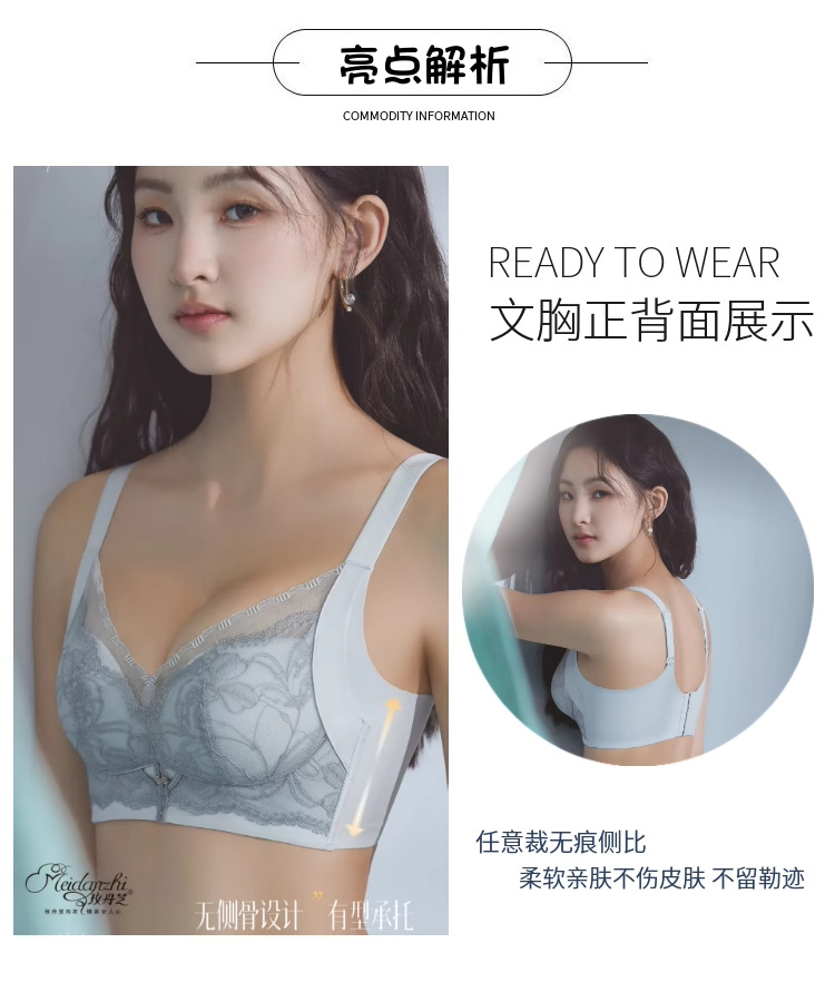 Meidanzi 정품 6937 작은 가슴을 가진 여성을 위한 측면 뼈 없는 속옷, 와이어 없음, 처짐 방지 조절 브라