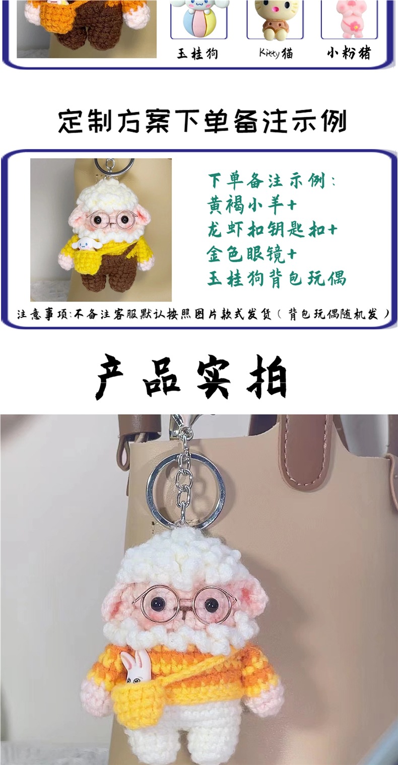수제 양 키 체인 커플 펜던트 크리 에이 티브 선물 인형 만화 짠 완제품 배낭 가방 교수형 액세서리스토어 가기