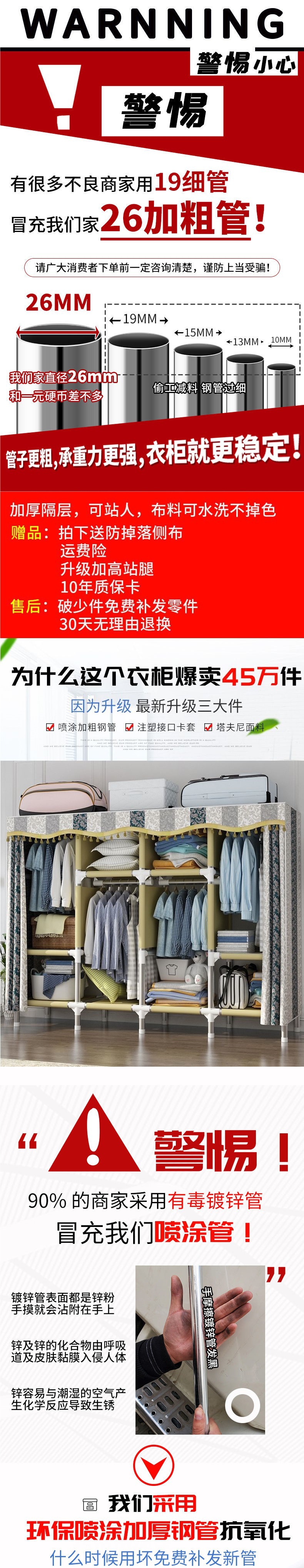 천 옷장 간단한 옷장 비 단단한 나무 보관 랙 강철 파이프 두꺼운 강화 강철 파이프 선반 옥스포드 천 옷장스토어 가기