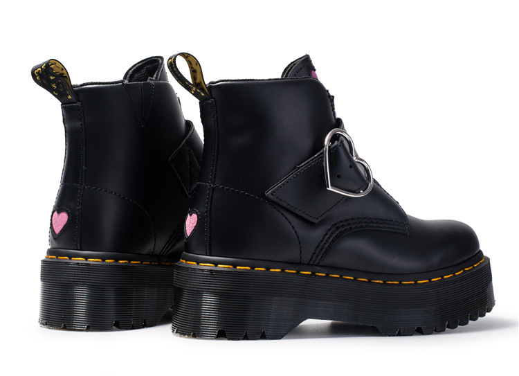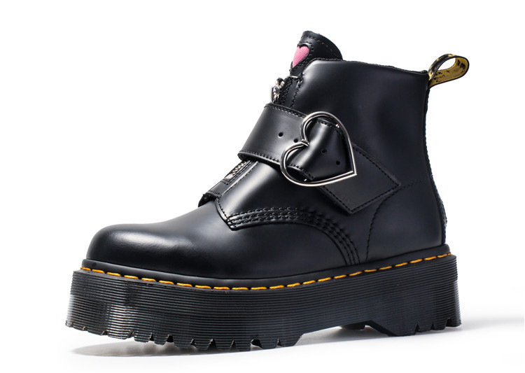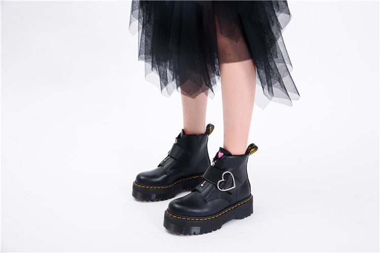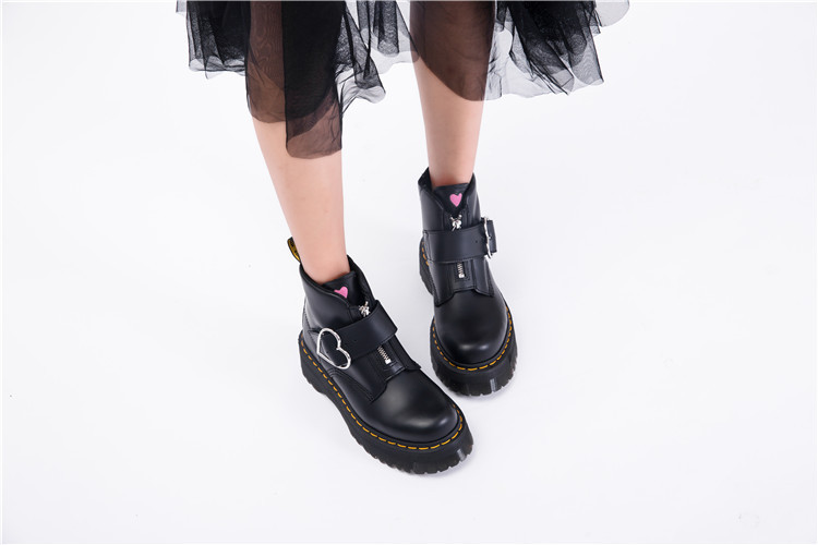 복숭아 하트 부츠 여성 버클 가죽 부츠 소녀 부츠 지퍼 러브 버클 두꺼운 밑창 영국 스타일 여성 부츠스토어 가기