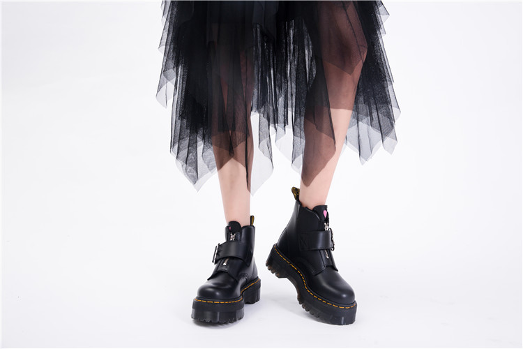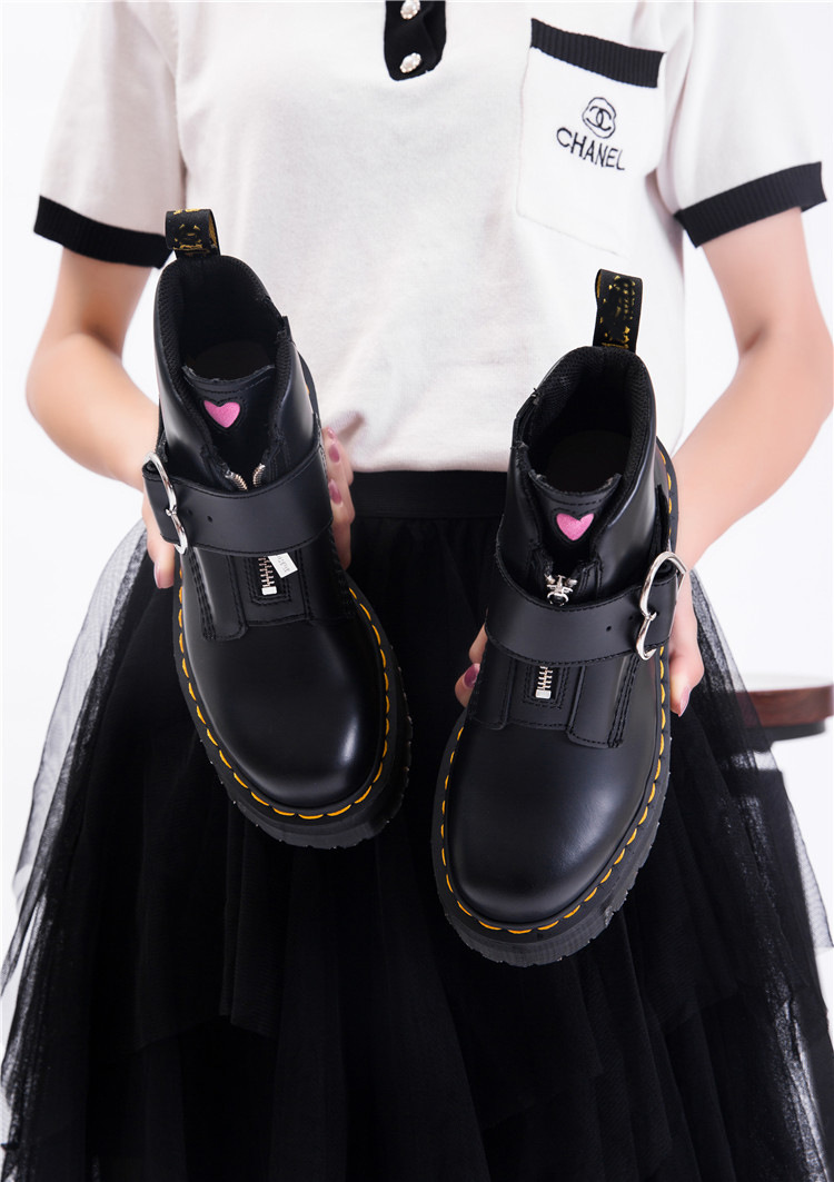 복숭아 하트 부츠 여성 버클 가죽 부츠 소녀 부츠 지퍼 러브 버클 두꺼운 밑창 영국 스타일 여성 부츠