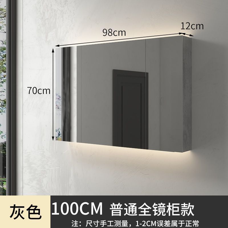 • ☆시멘트 그레이 일반 거울 수납장 [조명 없음] - 100cm (3단 도어) + 설치 부자재