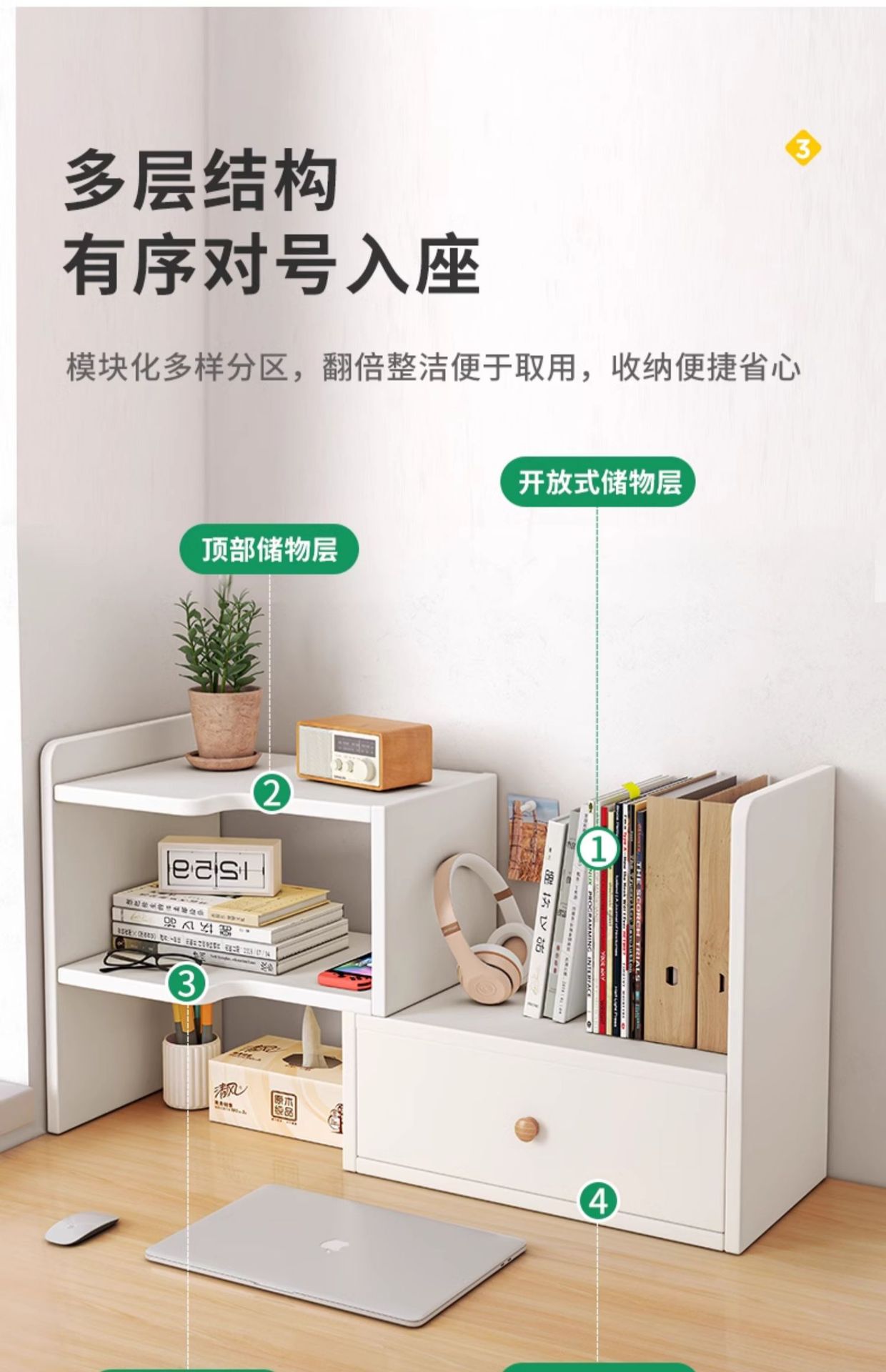 책상 책장 데스크탑 수납 선반 책상 수납 선반 다층 소형 선반 계층형 선반 기숙사 책상 학습 테이블스토어 가기