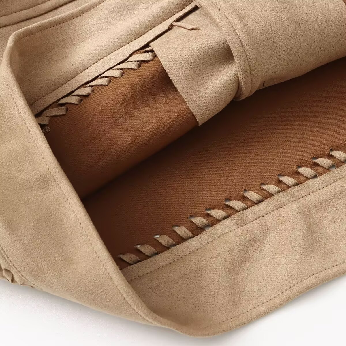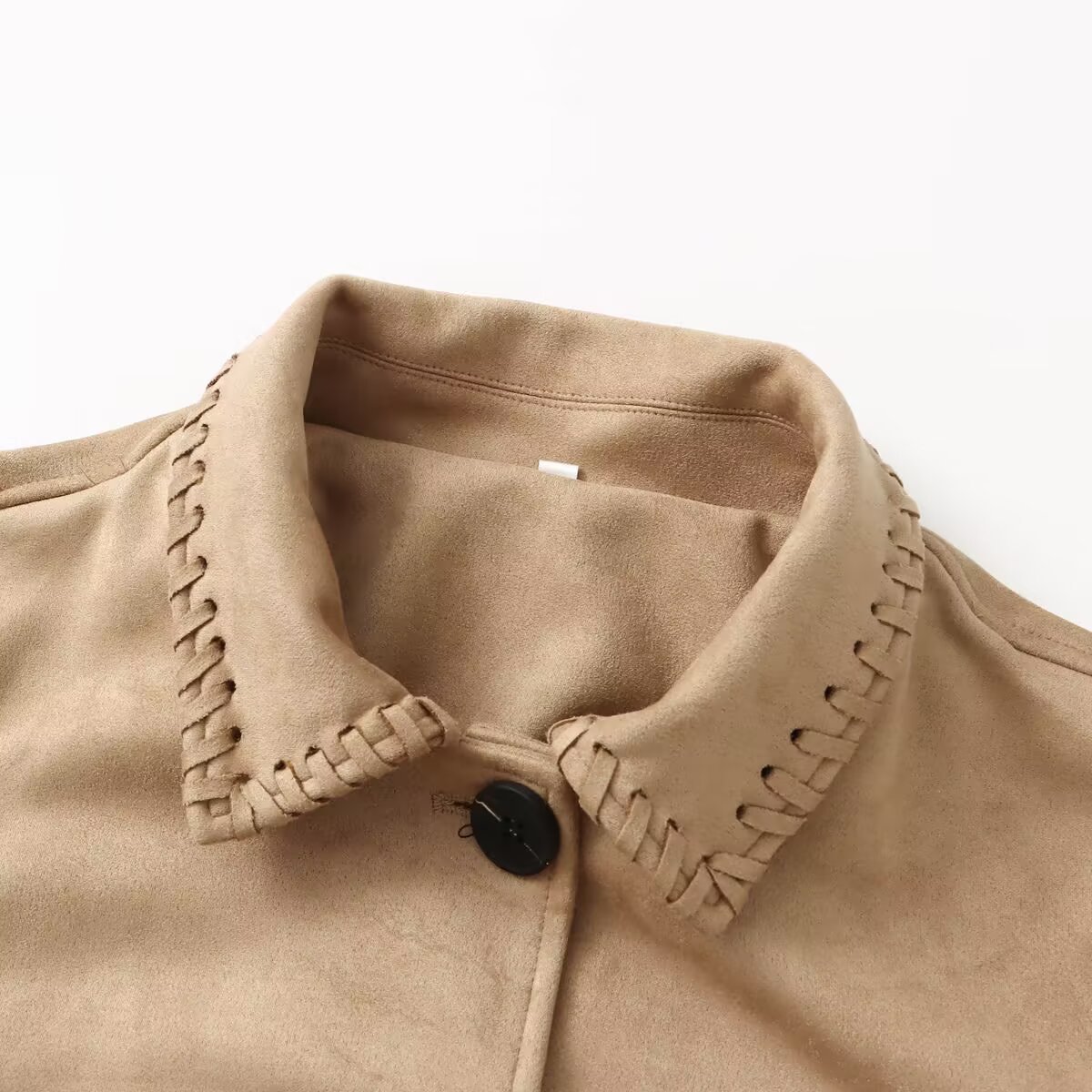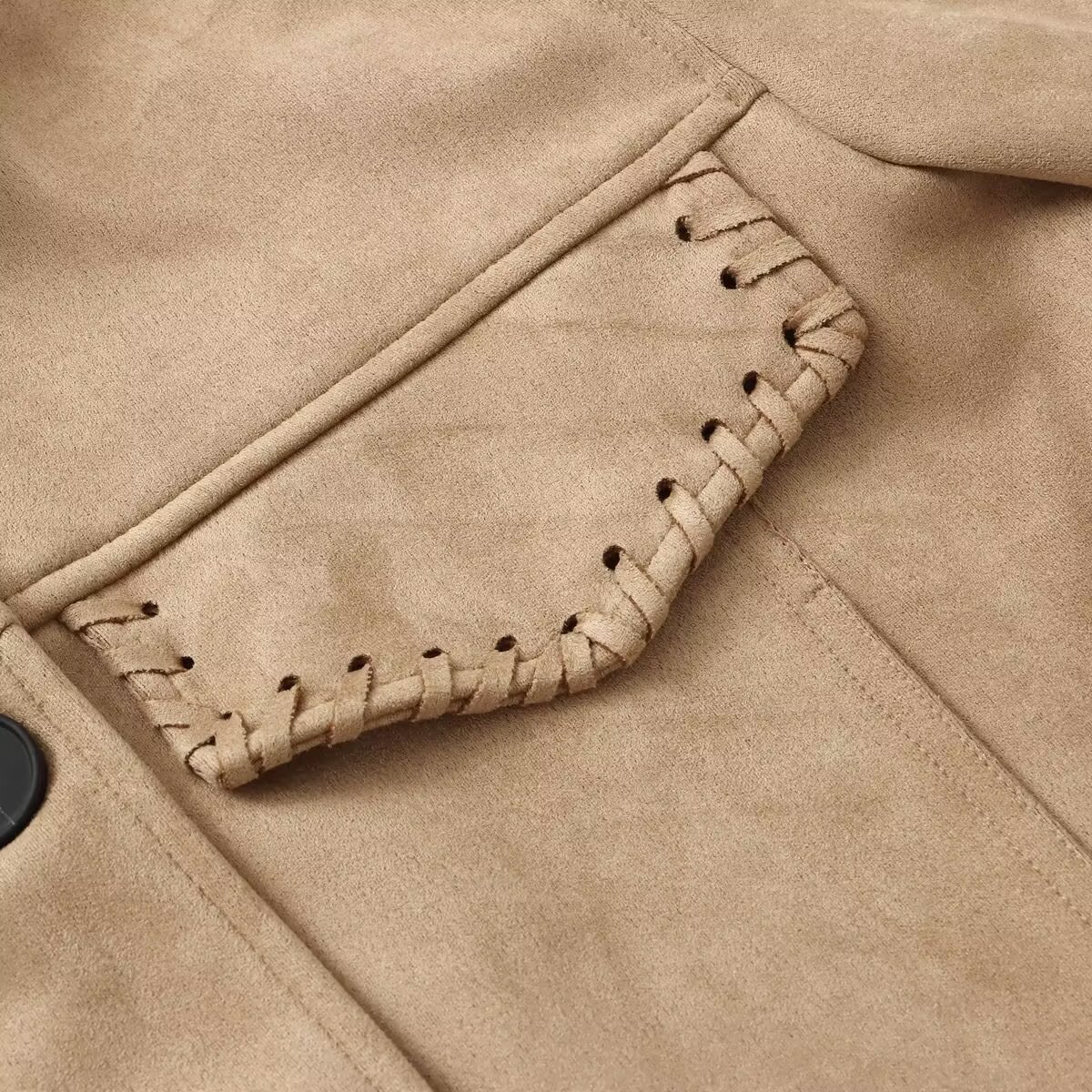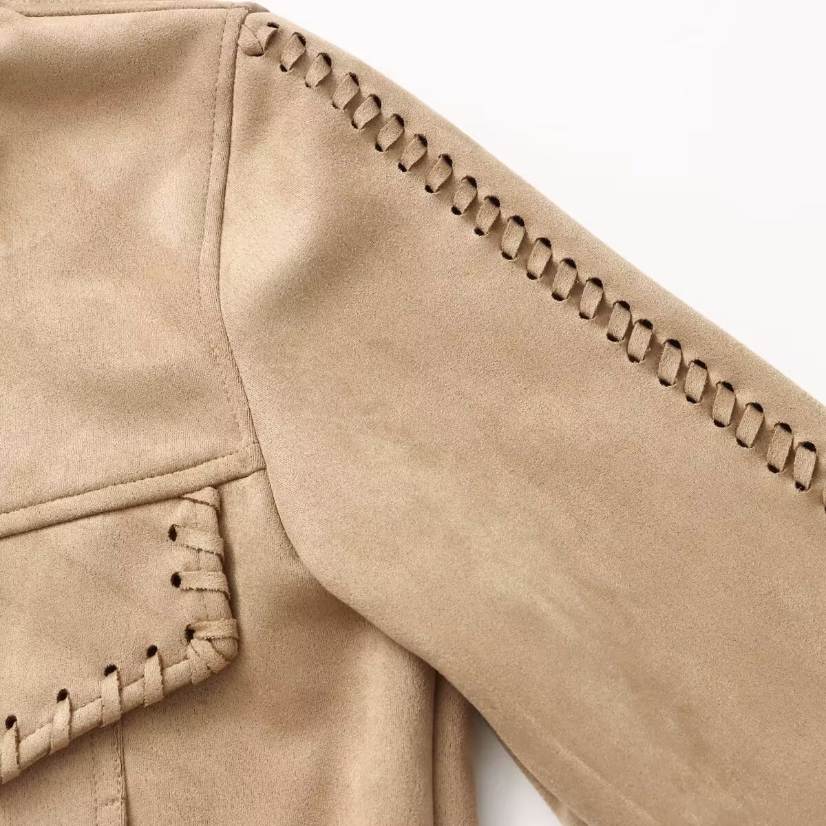 국경 간 대외 무역 여성 의류 2025 가을 유럽과 미국 스타일의 옷깃 긴 소매 짠 디테일 스웨이드 재킷 여성 C7100480스토어 가기