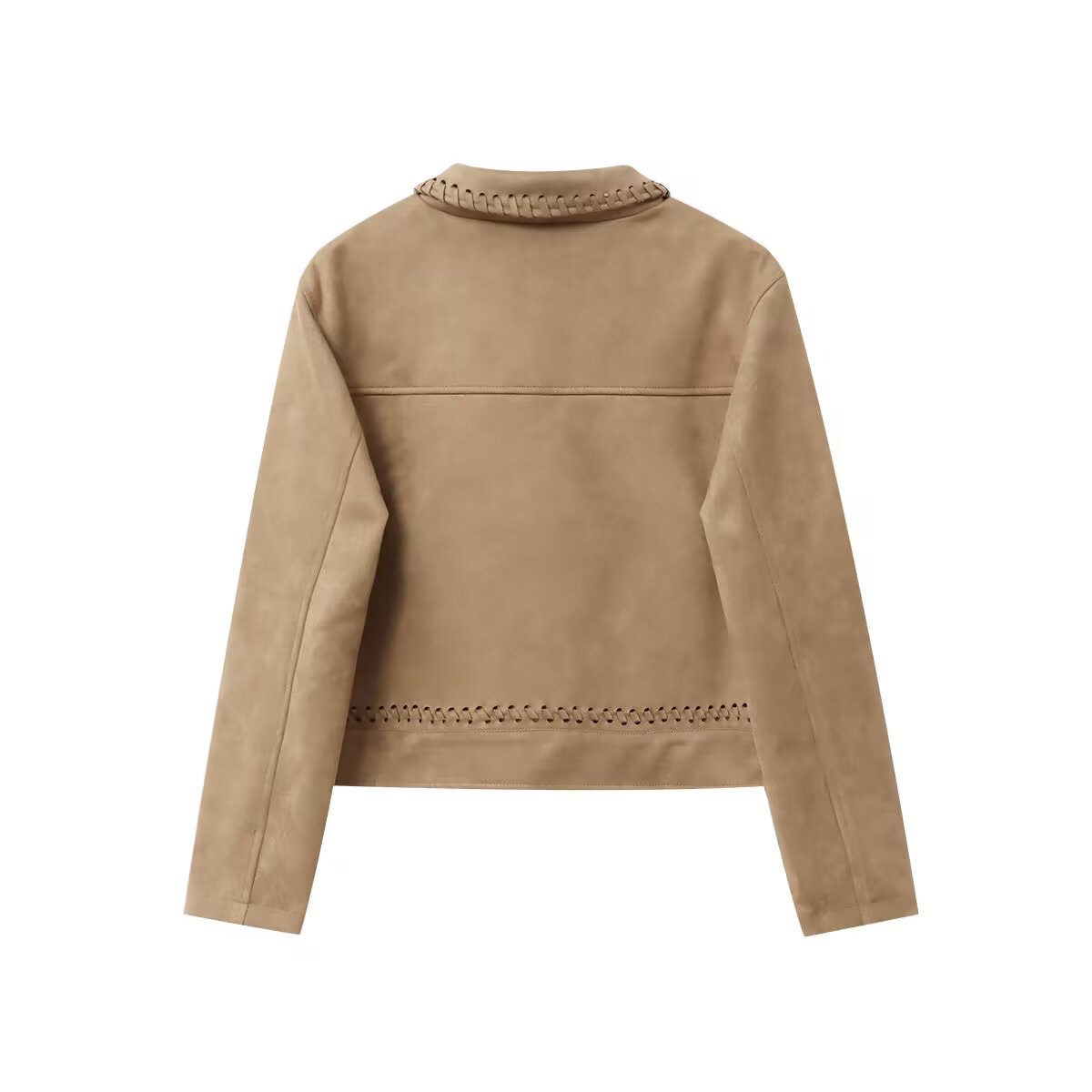 국경 간 대외 무역 여성 의류 2025 가을 유럽과 미국 스타일의 옷깃 긴 소매 짠 디테일 스웨이드 재킷 여성 C7100480