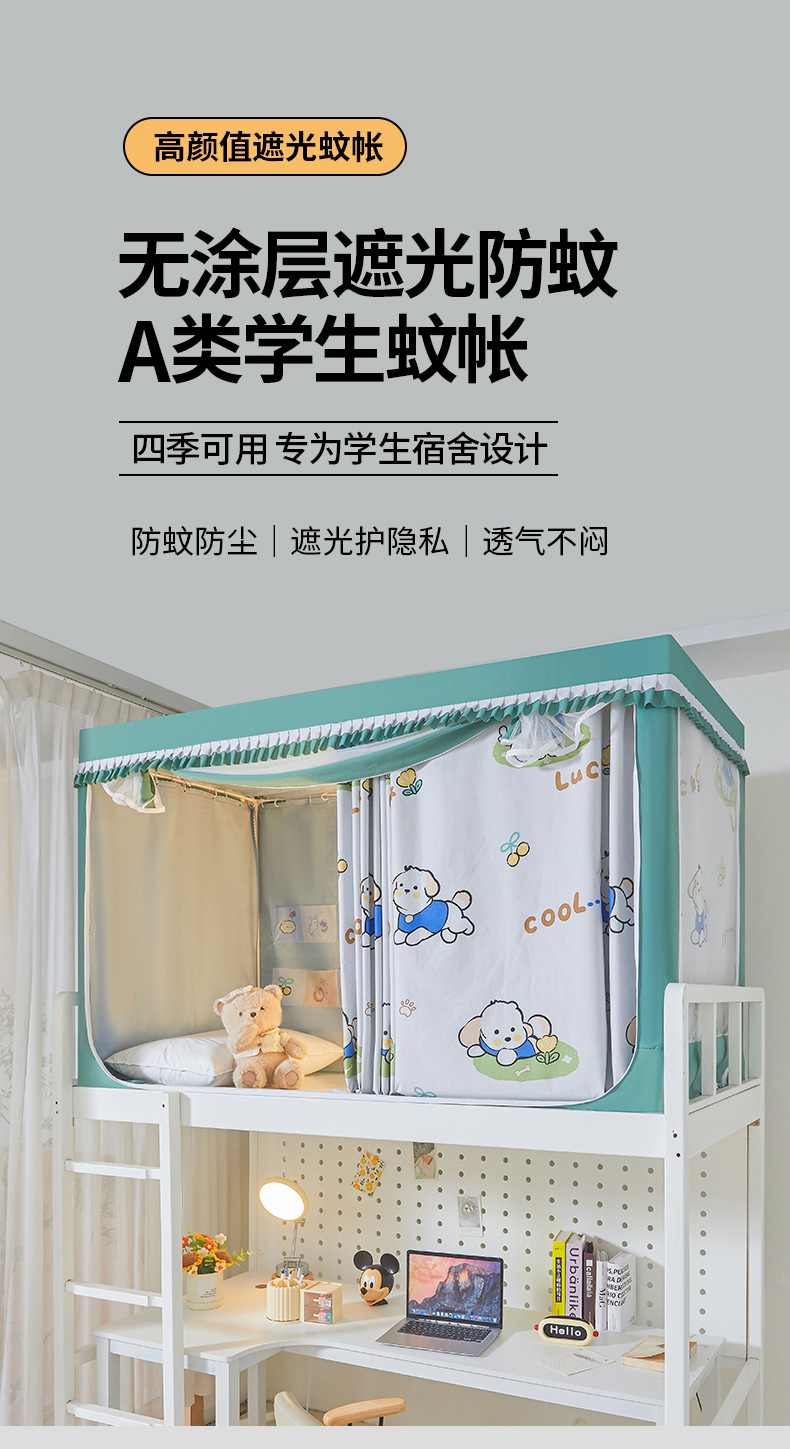 새로운 여름 학생 기숙사 이층 침대 범용 클래스 A 모기장 블랙 아웃 커튼 통합 모기 방지 및 방진 제조업체 도매스토어 가기