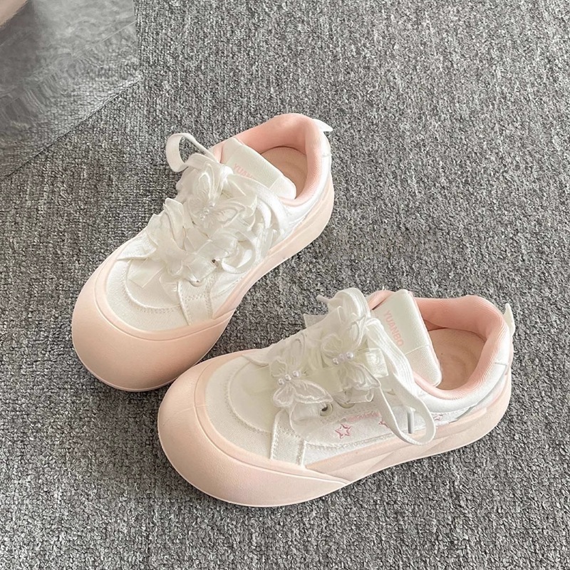 여성용 한국 스타일 운동화 2025 새로운 여름 작은 큰 발가락 신발 높이 증가 두꺼운 밑창 캐주얼 신발 흰색 신발스토어 가기