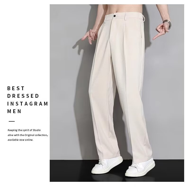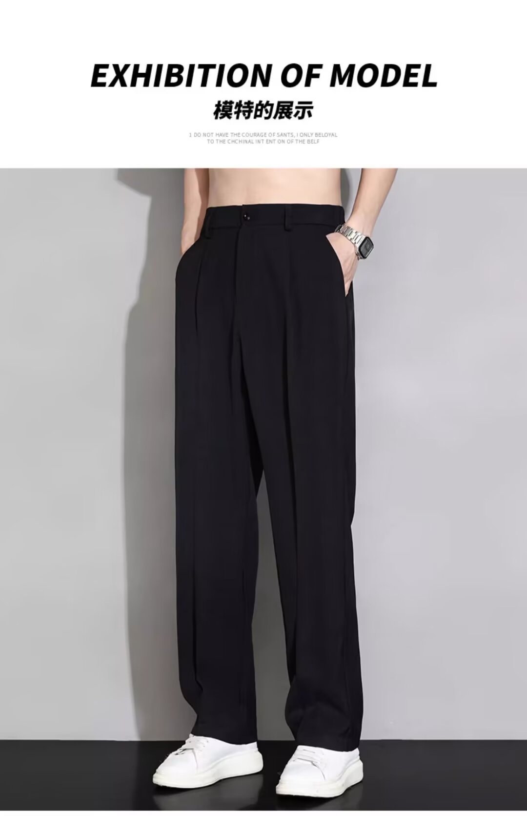 아이스 실크 작은 바지 남성 여름 얇은 와이드 레그 스트레이트 루즈 캐주얼 바지 드레이프 슈트 바지스토어 가기